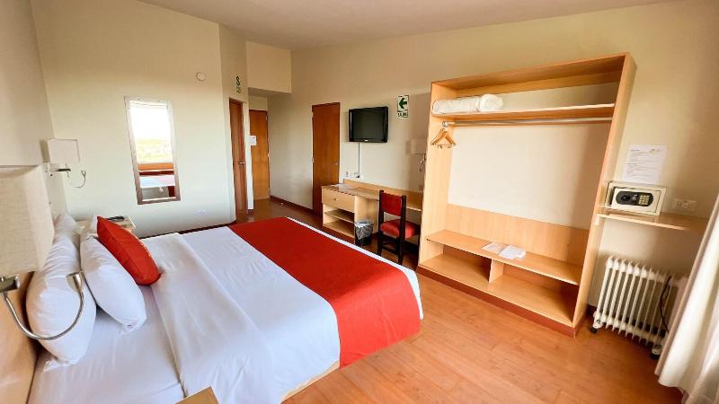 Disfruta de masajes, tratamientos corporales y faciales en este lujoso hotel a orillas del lago. Aprovecha el wifi gratis, los servicios de conserjería y la sala de estar común. Saborea una comida en el restaurante, un refrigerio en la cafetería o pide servicio a la habitación con horario limitado. Socializa con otros huéspedes en la recepción diaria gratuita o relájate en el bar/salón. Comienza tu día con un desayuno buffet gratuito, servido de 6:00 a 9:30 h. Los servicios de negocios incluyen un centro de negocios, servicios de tintorería/lavandería y una recepción abierta las 24 horas. Hay un servicio de transporte al aeropuerto (ida y vuelta) disponible con un recargo (24 horas). Las 61 habitaciones con aire acondicionado ofrecen minibar, wifi gratis y baños con bañera o ducha. También se proporcionan caja fuerte y escritorio, además de servicio de limpieza diario. Ubicado en Puno, Lake Titicaca Hotel se encuentra a 5 minutos en auto del Lago Titicaca y el histórico barco Yavari. Este hotel también está convenientemente cerca de la Universidad Nacional del Altiplano y la Isla Esteves. El Aeropuerto Internacional Inca Manco Cápac (JUL) está a aproximadamente 50 km de distancia.