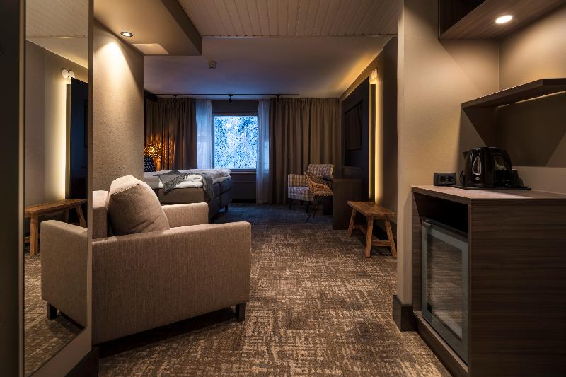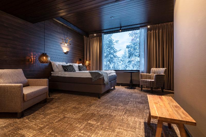 El hotel de 4 estrellas Lapland Hotels Sky Ounasvaara está situado en medio de un paisaje que se abre hacia el horizonte, con árboles cargados de nieve, rocas escarpadas y la luz de la noche sin noche. El mundo del norte te cautiva en cuanto abres la puerta principal del hotel: las pistas del centro de esquí, las pistas de esquí en la primera nevada y los increíbles senderos para bicicletas te acercan a la naturaleza. Las habitaciones de este clásico hotel, totalmente renovado, combinan los materiales de alta calidad de Laponia y la presencia de la naturaleza ante los grandes ventanales. El suave resplandor de una chimenea crea el ambiente en el vestíbulo del hotel. El restaurante Sky Kitchen & View es nominado cada año entre los 50 mejores restaurantes de Finlandia. La aurora boreal, el círculo polar ártico, Papá Noel, el Centro de Ciencias y Museo Arktikum, los teatros y el singular paisaje de la tundra en plena naturaleza de Ounasvaara, justo en el centro de la ciudad. Nuestro hotel está situado junto a las posibilidades recreativas de primera clase de la estación de esquí de Ounasvaara y Santasport, así como los eventos en Lappi Areena.