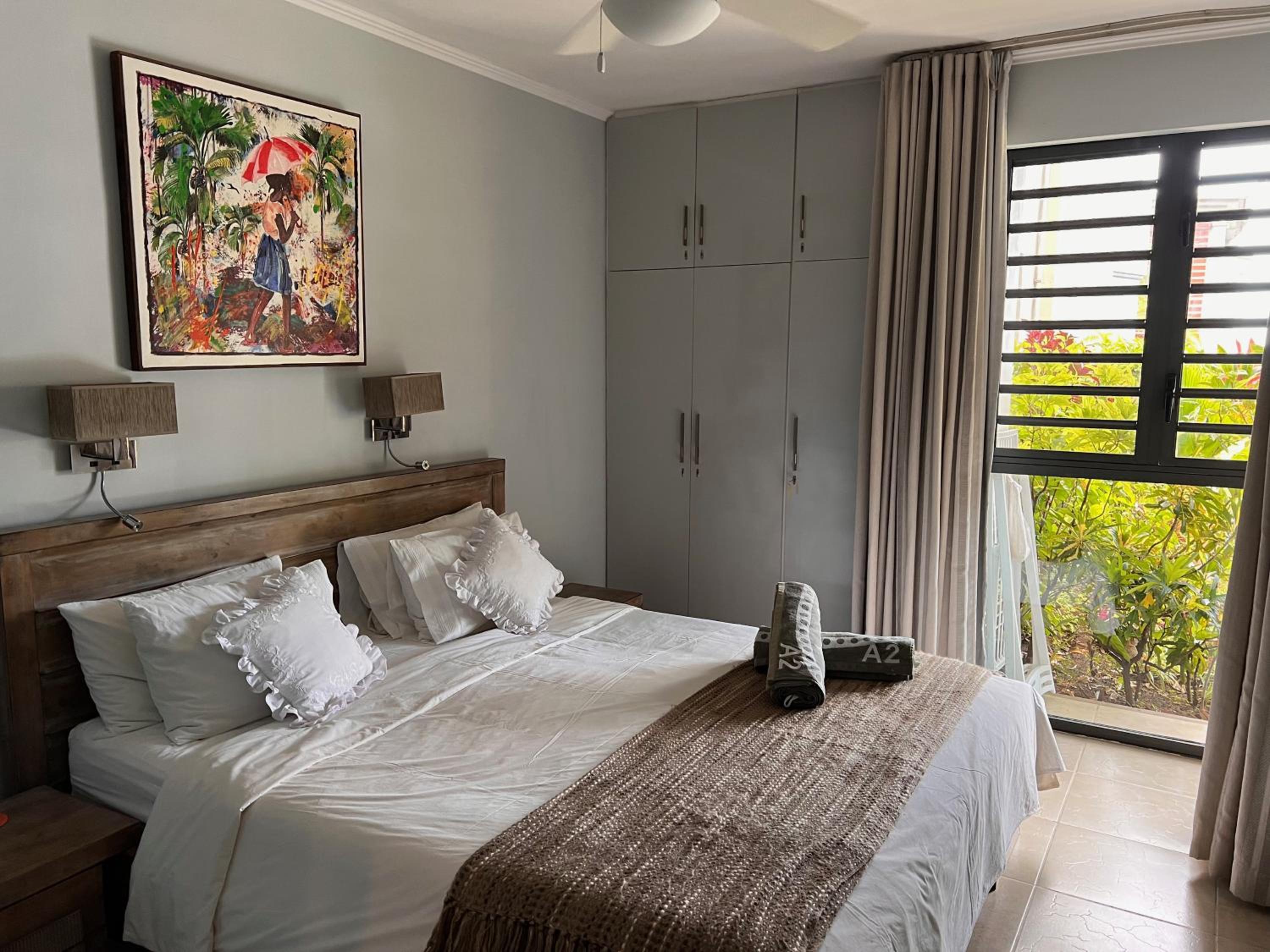 Este apartamento te permite disfrutar de una ubicación estupenda en Trou aux Biches, a pie de playa y a poca distancia de Playa de Trou-aux-Biches y Grand Bay Beach. Este establecimiento de 4 estrellas se encuentra muy cerca de Playa de Mont Choisy y Maheswarnath. Regálate una estancia fantástica en este apartamento donde, además de aire acondicionado, tendrás una cocina perfectamente equipada con frigorífico grande y horno. Y, si te apetece tomar el aire, puedes salir a su balcón o patio, que es de uso privado. Disfrutarás de un televisor LCD de 32 pulgadas que te permitirá acceder a multitud de canales por satélite y también podrás mantenerte al día con la conexión a Internet wifi gratis. Tendrás una caja fuerte y una zona de estar separada. El servicio de limpieza se ofrece todos los días. Recibe los cuidados que te mereces gracias al servicio de masajes o aprovecha instalaciones recreativas como piscina al aire libre y muchas más. Se ofrece además servicios de conserjería, servicio de canguro (de pago) y área de picnic. Se sirve un desayuno continental todos los días de 8:30 a 12:00 con un coste adicional. Tendrás conexión a Internet de alta velocidad por cable (gratuita), servicio de tintorería y depósito de equipaje a tu disposición. Pagando un pequeño suplemento podrás aprovechar prestaciones como servicio de transporte al aeropuerto (ida y vuelta) (disponible las 24 horas) y aparcamiento sin asistencia gratuito.
