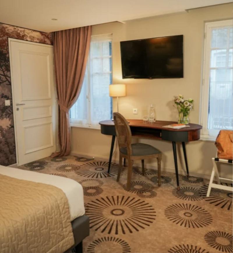 Este encantador hotel se encuentra en el centro de Bayeux, cerca del famoso Tapiz de Bayeux y a un corto paseo de su antiguo hogar, la Catedral de Bayeux. El hotel también está a 10 km de Arromanches y su playa de arena, a 25 km de Caen y a 35 km de Saint-Lô. El Aeropuerto de Deauville/Saint Gatien se encuentra a 85 km y el Aeropuerto de Dinard/Plertuit/St. Malo a unos 170 km del hotel. Construido en 1770, el hotel, una antigua oficina de telégrafos con un patio adoquinado, ofrece el encanto y la atmósfera de antaño y la comodidad moderna en sus 31 tranquilas habitaciones. El vestíbulo del hotel ofrece recepción y servicio de salida 24 horas, así como una caja fuerte. Los huéspedes pueden disfrutar de comida y bebida en el bar y restaurante del hotel, y los viajeros de negocios pueden aprovechar las instalaciones para conferencias y el acceso a Internet WLAN. El hotel también ofrece servicio de habitaciones y lavandería, y los conductores pueden dejar su vehículo en el aparcamiento del hotel por un suplemento. Cada una de las habitaciones del hotel está equipada con baño privado con bañera, ducha y secador de pelo. Otras comodidades incluyen teléfono de línea directa, televisión por satélite con canales europeos e ingleses, acceso a Internet, camas dobles, calefacción y caja fuerte. El campo de golf más cercano está a unos 10 km, en Omaha Beach. El almuerzo se sirve en el restaurante. Desde Caen, toma la carretera nacional N13/E46. Luego, toma la salida 36 hacia Bayeux/Arromanches. En la rotonda, toma la quinta salida. Continúa por la D613 hasta Bayeux. Gira a la izquierda en la D94A / Route de Caen. Luego, ve a la rue St Jean.