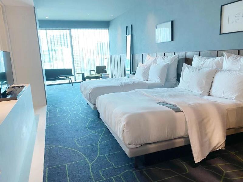 Este hotel está al lado de la estación de metro Dong Shilipu. Me quedé impresionante con su diseño. El vestíbulo parece un castillo negro. Había una pista interior para correr al lado del gimnasio...