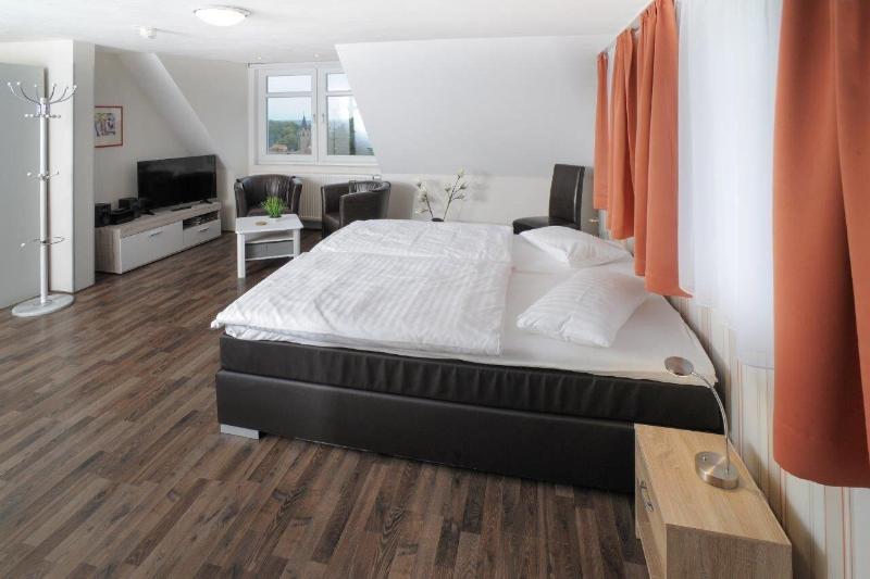 Ubicado en Quedlinburg, Le petit Palais – Hotel & Ferienapartments se encuentra a 1 minuto en coche del Harz-Saxony-Anhalt Nature Park y a 10 minutos de la Collegiate Church St. Servatius. Este hotel está a 11 km del Hexentanzplatz y a 8, 4 km de la Quedlinburg Cathedral. Disfruta de las vistas desde la terraza y el jardín, y aprovecha servicios como el wifi gratis. Hay aparcamiento gratuito disponible. El desayuno bufé se sirve todos los días de 8:00 a 10:00 con un coste adicional. Siéntete como en casa en una de las 18 habitaciones con frigorífico y televisor de pantalla plana. Para tu entretenimiento, tienes a tu disposición canales digitales y estaciones de conexión para MP3, además de conexión a Internet wifi gratis para mantenerte conectado. El baño está provisto de ducha y secadores de pelo. Entre las comodidades, se incluyen caja fuerte y cafetera y tetera.