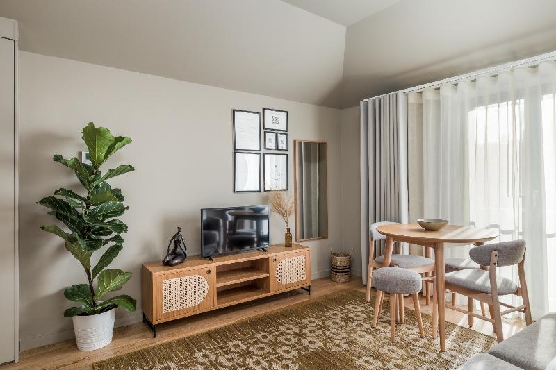 Todas las habitaciones disponen de aire acondicionado, cocina americana, baño privado, secador de pelo, cafetera, ducha a ras de suelo, nevera, zona de estar, artículos de aseo gratuitos, microondas, TV, sofá, insonorización, menaje de cocina, armario, horno, placa de cocina y tostadora.