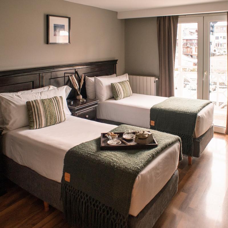 Descubra la innovadora arquitectura, el cálido diseño y la hospitalidad argentina del hotel Lennox, ubicado en la panorámica ciudad de Ushuaia. Puede viajar en trineo tirado por perros a través de la Patagonia Argentina y hasta ser recibido por pingüinos. Amanezca ante la imponente vista de la montaña desde una de nuestras 30 lujosas habitaciones. Si prefiere viajar en grupo, le ofrecemos habitaciones comunicadas con balcones privados. Todas nuestras habitaciones incluyen WiFi y de alta velocidad, un jacuzzi y productos de acogida. Estos son algunos de los muchos servicios del hotel. Tenemos sala de DVD, sala de lectura, centro de negocios y servicio de lavandería. Deléitese con los sabores de la cocina del sur de la Patagonia en el Buena Vista Bar & Lounge. El bar ofrece bebidas espirituosas premium, vinos argentinos de cosechas especiales y una gran selección de tés y cafés.