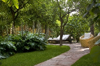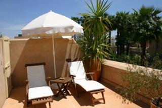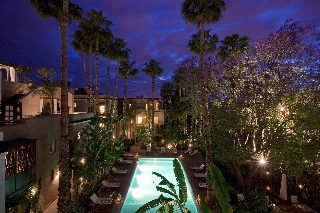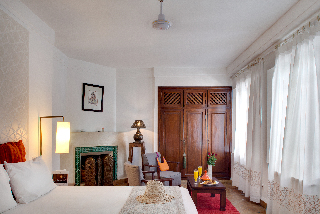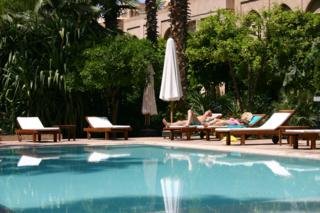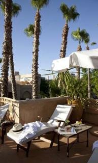 Este encantador hotel, envuelto por un halo de historia, se encuentra en el barrio de la Alcazaba, una ubicacion que lo bendice con una incomparable proximidad a algunos de los lugares mas famosos de Marrakech, como el Palacio Real o la plaza de Jamaa el Fna, ademas de estar bien comunicado con las impresionantemente bellas montanas del Atlas. El hotel dista aproximadamente 3 km del aeropuerto de Menara.Esta antigua e impresionante residencia del siglo XIX, uno de los mas autenticos riads de Marrakech, fue transformada en un encantador hotel con 36 habitaciones y suites. Escondido en este lujoso jardin plagado de centenarias palmeras, naranjos, olivos y jacarandas, el riad combina armoniosamente la belleza de la arquitectura tipicamente marroqui con las comodidades del siglo XXI. Este establecimiento climatizado dispone de unas instalaciones a disposicion de los huespedes que incluyen vestibulo con servicio de salida y recepcion 24 horas, caja fuerte, cambio de divisas, guardarropa y ascensor. Tambien se puede hacer uso de salon de peluqueria, salon de TV, bar y sala de desayunos. Ademas, dispone de servicio de habitaciones y de lavanderia, aparcamiento y alquiler de bicicletas.Las habitaciones son amplias y confortables, con una completa gama de servicios y prestaciones, desde TV via satelite hasta reproductor de DVD. Todas cuentan con un bonito diseno y algunas de ellas se completan con chimenea y terraza privada. Tienen cuarto de bano particular con ducha, banera y secador de pelo, asi como cama doble o extra grande, telefono de linea directa, conexion a Internet, caja fuerte, minibar y aire acondicionado y calefaccion regulables.El riad cuenta con piscina al aire libre con chiringuito y tumbonas y sombrillas listas para su uso. Los huespedes pueden tambien hacer ejercicio en el gimnasio o elegir entre una seleccion de tratamientos de hidroterapia y masajes.Se sirven almuerzo y cena a la carta.
