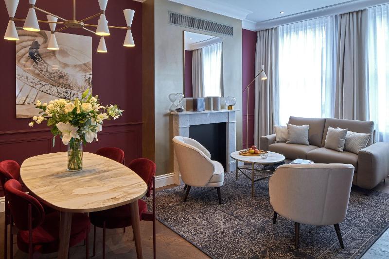 Lexham Gardens by Cheval Maison es un hotel boutique que ofrece exclusivamente apartamentos, ubicado en el corazón de Kensington y a poca distancia de la estación de metro de Gloucester Road. Con su icónica fachada de columnas blancas, característica del distrito real de Kensington y Chelsea, este elegante establecimiento dispone de 30 apartamentos de una y dos habitaciones con un diseño exquisito, distribuidos en seis plantas. Cada apartamento está lujosamente amueblado y presenta una de las tres temáticas creativas que evocan la esencia británica de la zona: verde competición, rojo glamuroso y un neutro ecuestre. El gimnasio está disponible las 24 horas del día, y el jardín paisajístico aporta un oasis de calma a este vibrante y exclusivo distrito. Los apartamentos cuentan con cocinas totalmente equipadas con electrodomésticos de alta tecnología, así como con todas las comodidades necesarias para una estancia excepcional, y se pueden reservar para cualquier periodo de tiempo.
