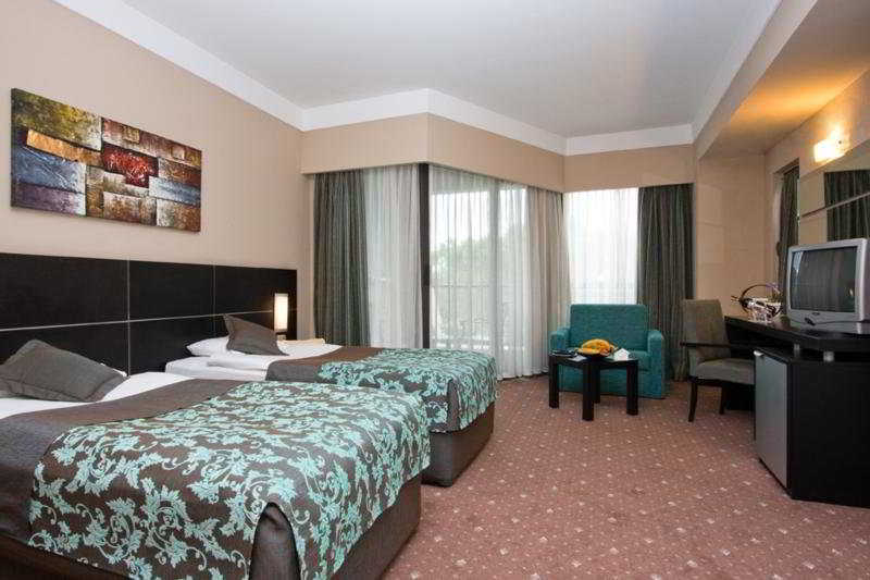 Este complejo vacacional est compuesto por un edificio principal y dos anexos en los que se reparten un total de 466 habitaciones. En el amplio hall de entrada podr encontrar un rea de recepcin abierta las 24 horas del da. Parte de las instalaciones de primera son cafeteras, una galera comercial, una peluquera, varios bares, una discoteca, un anfiteatro, un restaurante principal y cinco a la carta (algunos climatizados), varias salas de conferencias y un cibercaf (de pago). Otras prestaciones del hotel son el servicio de habitaciones, de lavandera y de atencin mdica, un aparcamiento, un garaje y un club infantil para nios de edades comprendidas entre los 4 y los 12 aos, as como un parque para que puedan jugar y otro club junior (13-16 aos).