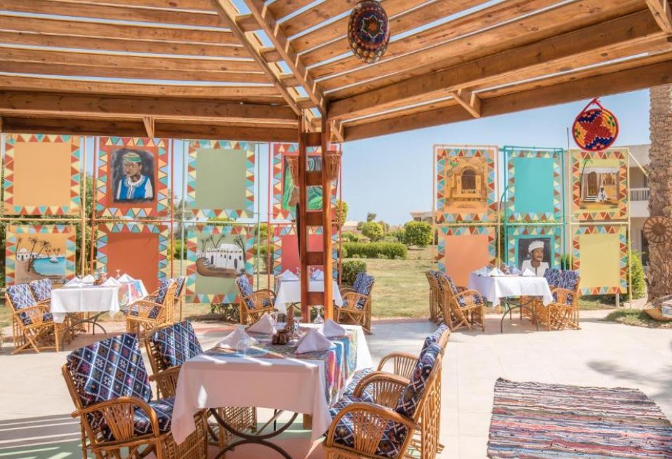 Los huéspedes pueden elegir entre 7 restaurantes de alta calidad y 6 bares elegantes. El restaurante Al Dente sirve cocina internacional, mientras que el D'White es el restaurante principal. El restaurante La Casina sirve cocina italiana, mientras que el restaurante Podium ofrece cocina internacional a la carta, el restaurante Z'etes cocina mediterránea, el restaurante Aikadolli cocina nubia y el restaurante Happy Buddha cocina asiática. Los restaurantes de especialidades requieren reserva previa. Los huéspedes cuentan con vistas preciosas al mar.