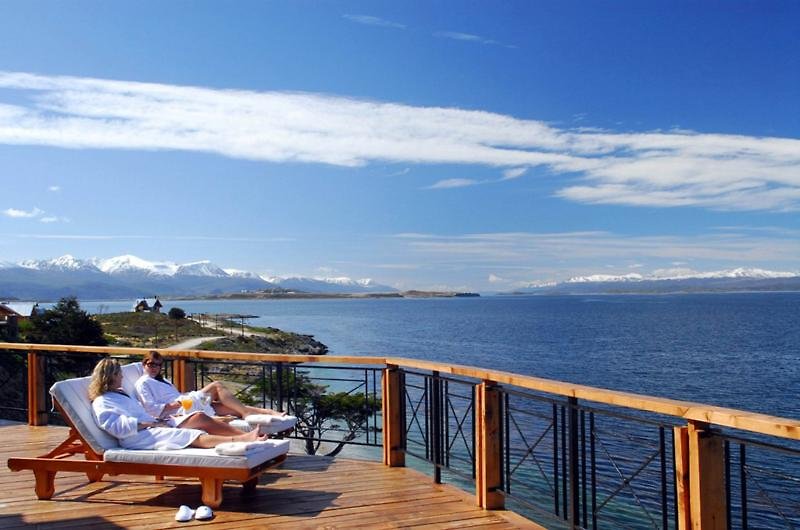 Ubicación - El hotel está situado en uno de los lugares más exóticos del mundo, a la orilla del canal de Beagle y con una vista preciosa de los picos cubiertos de nieve de la majestuosa cordillera de los Andes. Se encuentra a 15 minutos de viaje del centro de la ciudad de Ushuaia con su centro turístico y el Parque Nacional Tierra del Fuego. Además, a 20 minutos de viaje se puede visitar el glaciar Le Martial y las pistas de esquí de fondo del sur de Tierra del Fuego. Las pistas de esquí de Cerro Castor están a unos 25 minutos de coche.. Instalaciones - El hotel fue edificado en el año 2005. El alojamiento tiene un total de 54 habitaciones para acomodar a sus huéspedes. Es posible acceder a las plantas cómodamente en ascensor o bien por las escaleras. Las instalaciones incluyen una caja fuerte y una oficina de cambio. La conexión Wi-Fi en las zonas públicas permite a los viajeros mantenerse en contacto con el mundo exterior. En cuanto a opciones gastronómicas, el establecimiento cuenta con un restaurante, un comedor y un bar. Hay comercios. En el recinto del hotel hay un precioso jardín y un parque infantil. Las instalaciones del alojamiento también incluyen una sala de TV y una sala de juegos. Aquellos que viajen con vehículo propio pueden dejarlo en el aparcamiento del establecimiento. Hay un garaje para bicicletas a disposición de los huéspedes. También se incluyen asistencia médica, servicio de habitaciones y una lavandería.. Habitaciones - En las habitaciones hay aire acondicionado, calefacción central y un cuarto de baño. Hay a disposición una cama king size. Además, hay una caja fuerte y un minibar. El equipamiento estándar incluye una mini nevera. Pequeños extras se encargan de proporcionar una estancia agradable, como conexión a Internet, teléfono, televisor y Wi-Fi. Los cuartos de baño están provistos de una ducha y una bañera. Además, hay un secador de pelo. El hotel ofrece habitaciónes familiares y habitaciones de no fumadores.. Deporte y ocio - Los días más calurosos, los huéspedes pueden disfrutar de un refrescante chapuzón en la piscina cubierta o la piscina al aire libre. Una terraza invita al descanso. La bañera de hidromasaje en la zona de baño promete una relajación total. En la zona de ocio, el alojamiento ofrece gimnasio, spa y sauna, así como, por un cargo extra, baño de vapor y masajes. Hay un club infantil para proporcionar diversión y entretenimiento. Copyright GIATA 2004 - 2016. Multilingual. Comidas - Se pueden reservar diversos servicios gastronómicos. Los huéspedes pueden escoger entre alojamiento con desayuno y media pensión. Se prepara desayuno, almuerzo y cena.. Tarjetas de crédito - En el establecimiento se aceptan las siguientes tarjetas de crédito: American Express, Visa, Diners Club y MasterCard..