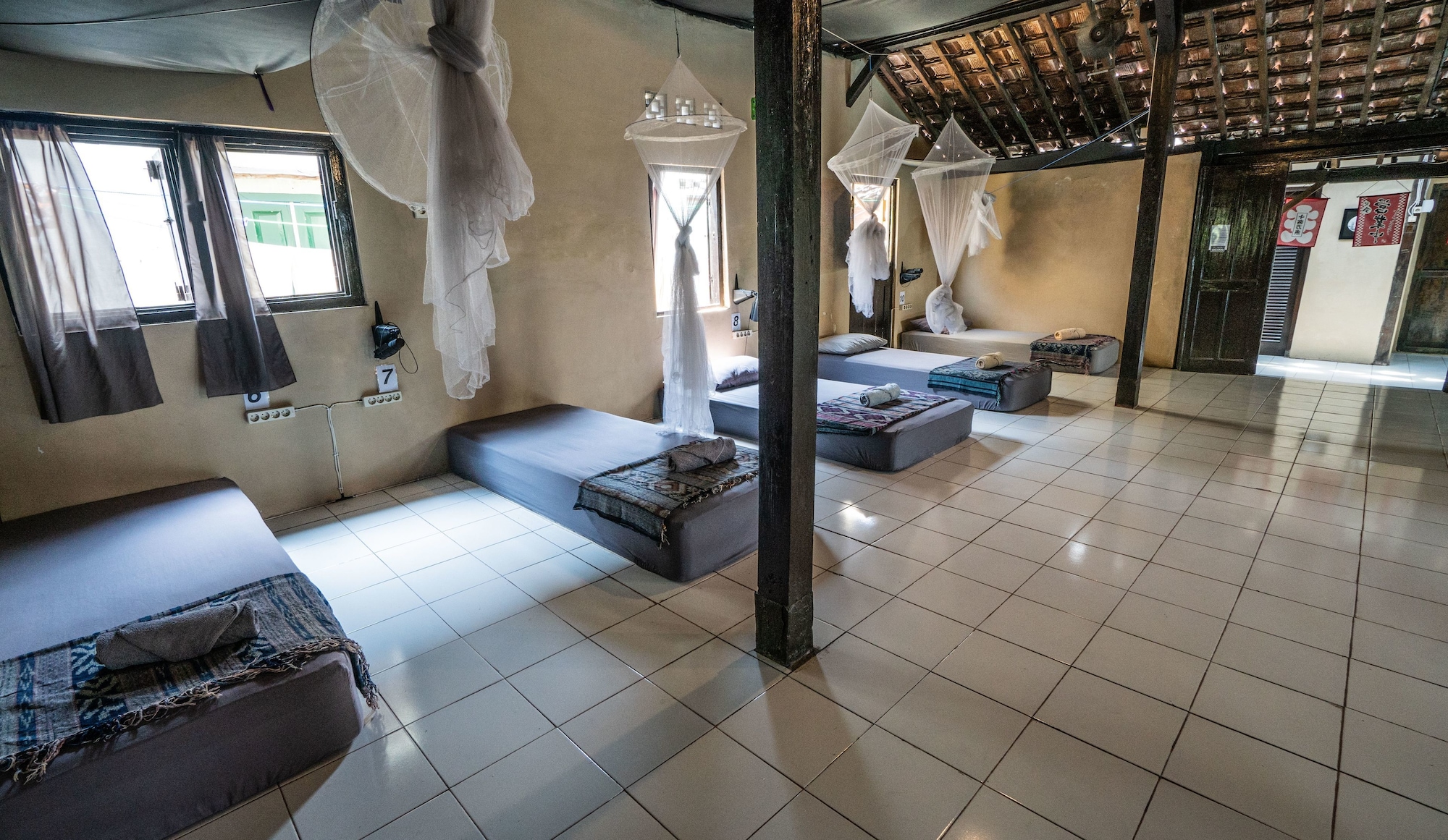 Si te alojas en Losmanos Hostel, en Yogyakarta (Mantrijeron), estars a pocos minutos de Centro de artesana Batik Plentong y Calle Malioboro. Este albergue se encuentra cerca de Masjid Jogokariyan y de Parque de Alun Alun Kidul. Te sentirs como en tu propia casa en cualquiera de las 6 habitaciones. Mantn el contacto con los tuyos gracias a la conexin a Internet wifi gratis. El cuarto de bao est provisto de ducha y artculos de higiene personal gratuitos. Con piscina al aire libre y muchas otras instalaciones recreativas a tu disposicin, no te quedar ni un minuto libre. Tienes tambin una terraza y jardn donde sentarte a contemplar el paisaje. Se ofrece adems conexin a Internet wifi gratis y un televisor en la zona comn. Disfruta de tu bebida favorita en el bar o lounge o en el bar junto a la piscina. Se ofrece un desayuno a la carta todos los das de 8:30 a 13:00 con un coste adicional. Tendrs tintorera o lavandera, un dispensador de agua y taquillas a tu disposicin. Se ofrece servicio de transporte al aeropuerto (ida y vuelta) de pago a peticin.