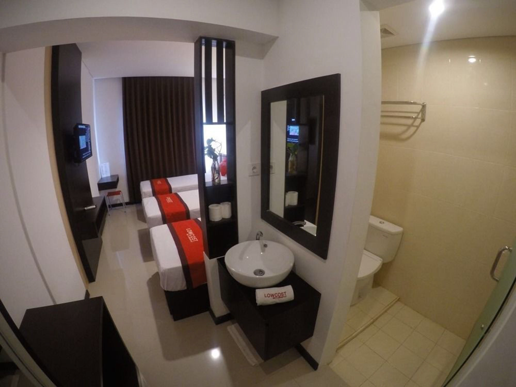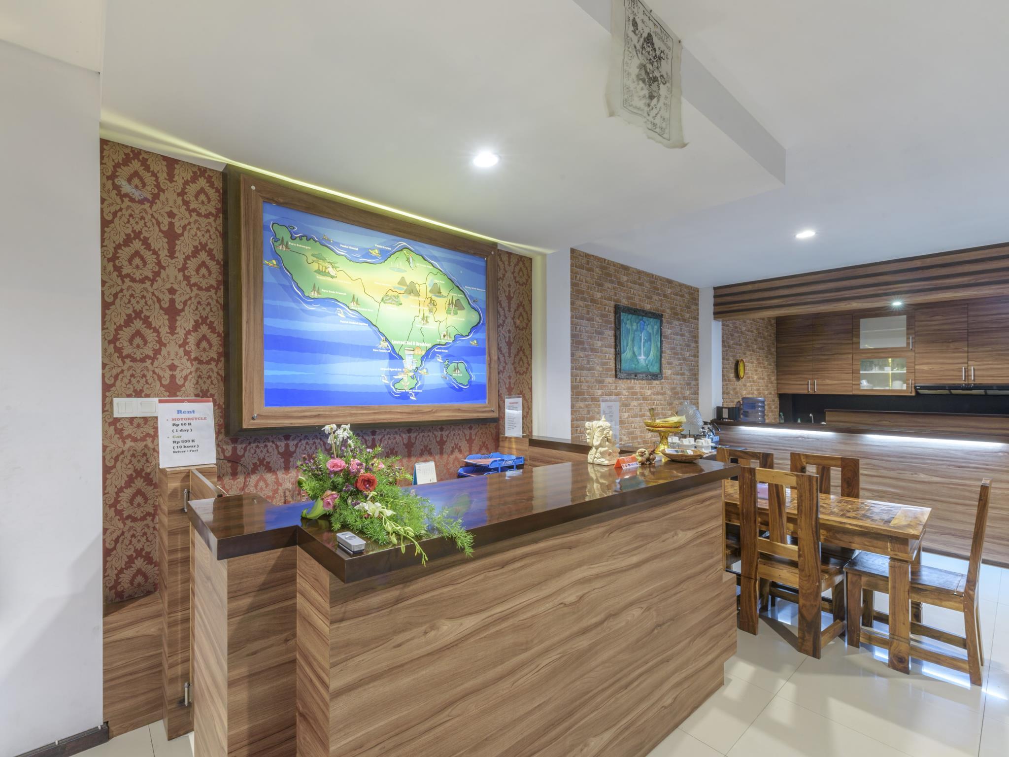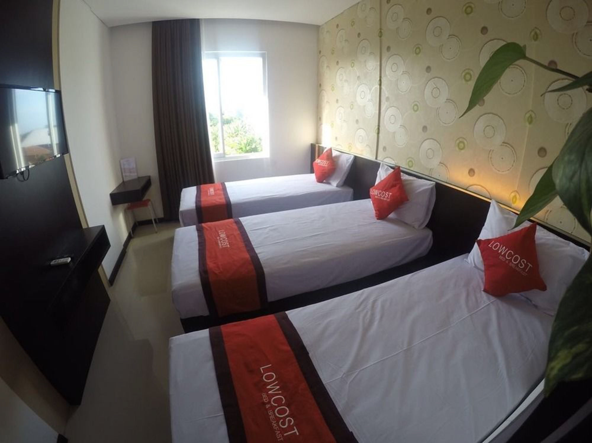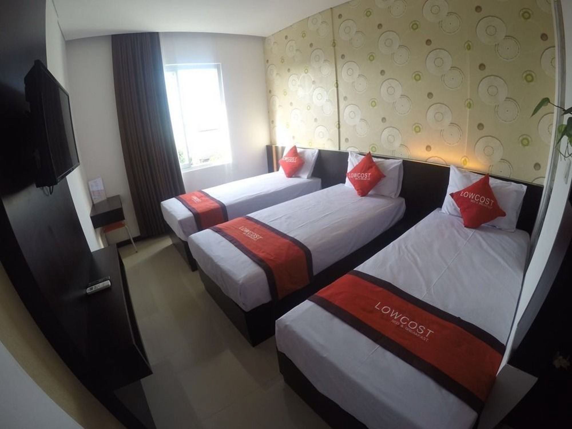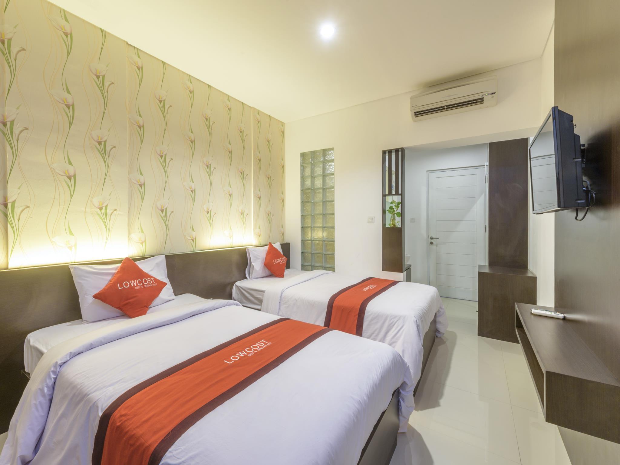 Si eliges Lowcost Bed & Breakfast en Tuban, estarás a pocos minutos de Benoa Square y en las inmediaciones de Playa de Kuta. Este hotel se encuentra cerca de Fish Market y de Morning Market.Habitaciones Te sentirás como en tu propia casa en una de las 19 habitaciones con aire acondicionado y televisor LED. La conexión a Internet wifi gratis te mantendrá en contacto con los tuyos; también podrás ver tu programa favorito en el televisor con canales por satélite. El cuarto de baño está provisto de ducha y artículos de higiene personal gratuitos. Las comodidades incluyen escritorio y botella de agua gratuita, además de un servicio de limpieza disponible todos los días.Servicios Con jardín donde descansar y comodidades como conexión a Internet wifi gratis, ¡no te faltará de nada!Para comer Si tienes hambre, pasa por el restaurante de este hotel, que ofrece desayunos, almuerzos y cenas. También hay una cafetería y servicio de habitaciones las 24 horas.Servicios de negocios y otros Tendrás periódicos gratuitos en el vestíbulo, servicio de recepción 24 horas y lavandería a tu disposición. Hay un aparcamiento sin asistencia gratuito disponible.
