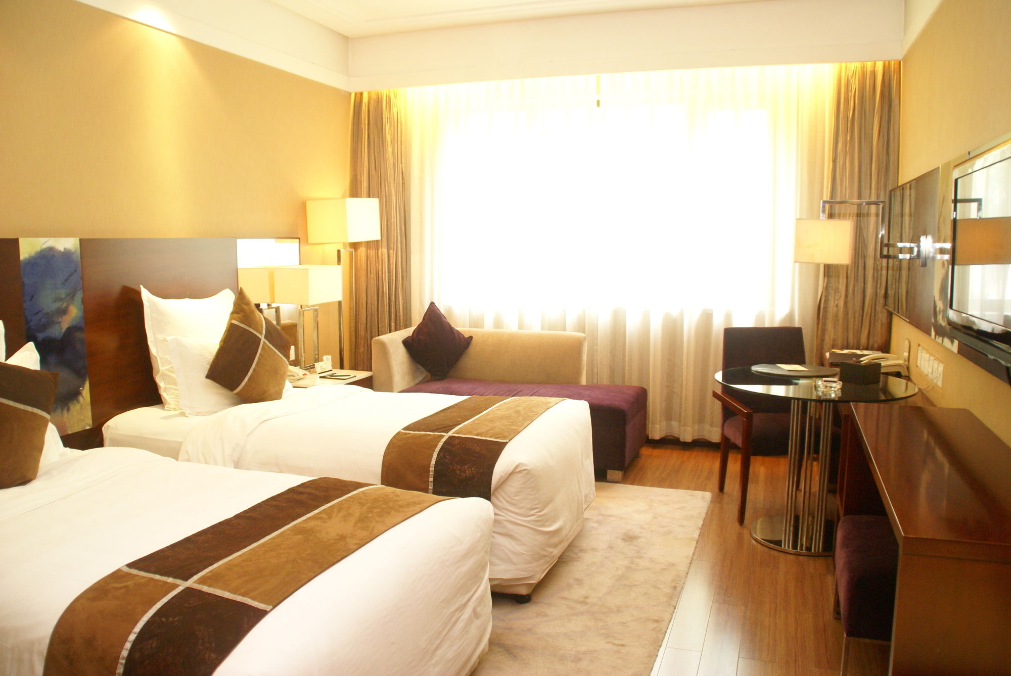 Si te alojas en Madison Hotel Xi'an Qujiang International Convention Center TV Tower, en Miaopotou (Distrito de Nueva Qujiang), podrás llegar fácilmente a Universidad Normal de Shaanxi y a Gran Pagoda del Ganso Salvaje. Este hotel se encuentra cerca de Universidad de Estudios Internacional de Xi'an y de Tang Paradise.Habitaciones Te sentirás como en tu propia casa en una de las habitaciones con minibar. La conexión a Internet wifi gratis te mantendrá en contacto con los tuyos; también podrás ver tu programa favorito en el televisor con canales por cable. El baño privado con ducha y bañera combinadas está provisto de artículos de higiene personal gratuitos y albornoces. Las comodidades incluyen caja fuerte (cabe un portátil) y escritorio, además de un servicio de limpieza disponible todos los días.Servicios Para un relax sin igual, nada como una visita al spa.Para comer Descubre los deliciosos platos de los 2 restaurantes y la cafetería de este hotel. Y si no te apetece salir, puedes llamar al servicio de habitaciones las 24 horas.Servicios de negocios y otros Hay un aparcamiento sin asistencia gratuito disponible.