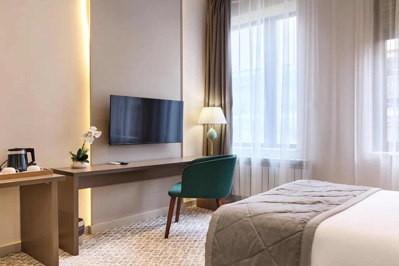 Las instalaciones y servicios incluyen recepción 24 horas, sala de desayunos (con cargo adicional), cajero automático, wifi gratuito, restaurante y servicio de traslado (con cargo adicional).Las cómodas habitaciones están equipadas con aire acondicionado, caja fuerte, TV de pantalla plana, minibar y hervidor de agua.Dirección: Calle Shamsi Badalbeyli, 96, Bakú, Azerbaiyán.
