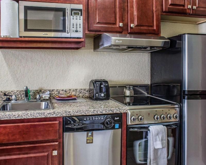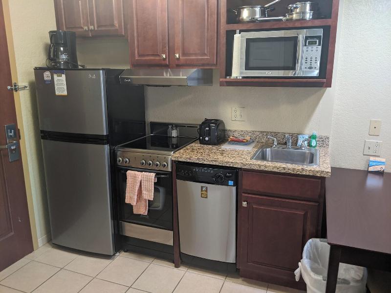 Nos alojamos por dos noches. Nuestra habitación estaba limpia. Me gustó que había varias almohadas en la cama. Zona de cocina agradable que no necesitamos este viaje. Estábamos visitando a la familia...