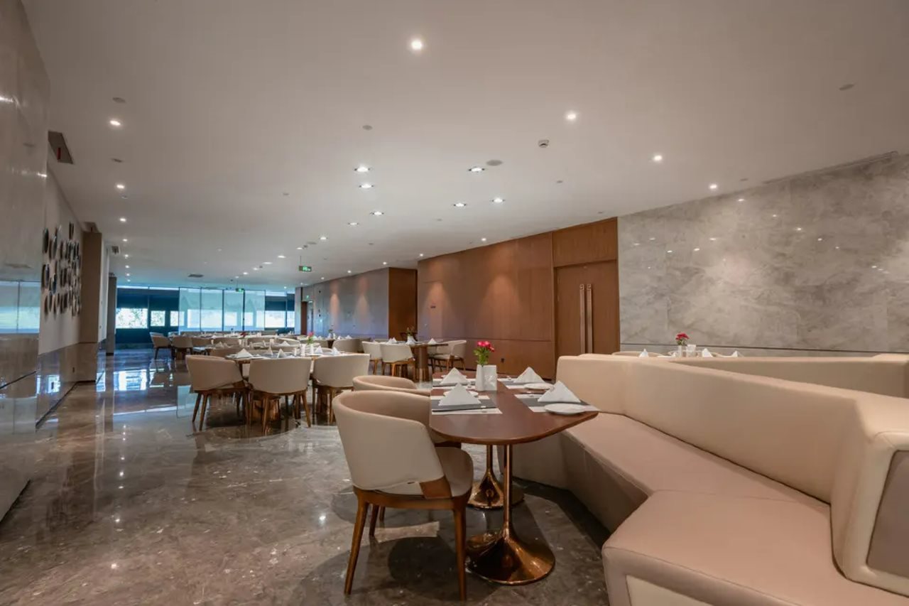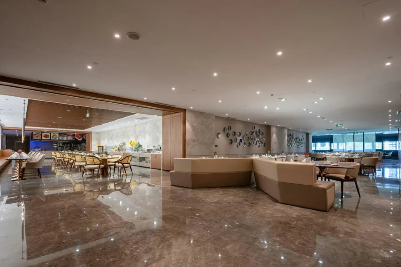 Facilities and services include Wifi, air conditioning, a fitness center, a restaurant, a children's play area, elevators, a concierge, a business center, meeting rooms, and housekeeping daily.