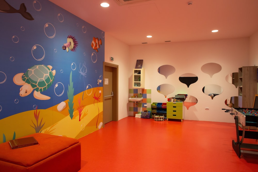 El hotel se encuentra en Suncana Uvala, en un pinar cerca de la playa, a la que se le ha c...