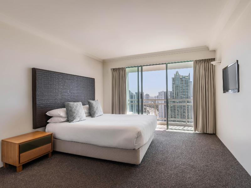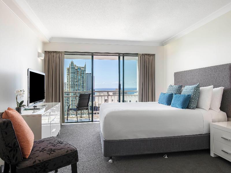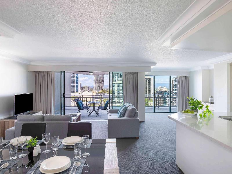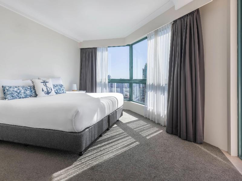 Mantra Crown Towers ofrece la escapada familiar ideal, ubicado en el corazón de Surfers Paradise, a solo 100 m de la playa de Surfers Paradise y a 500 m de la zona de cafés y restaurantes de Cavill Avenue. Con una gama de espaciosas opciones de alojamiento que incluyen apartamentos de una, dos y tres habitaciones, todos los apartamentos son completamente independientes con cocina y lavandería, y cuentan con su propio balcón privado, muchos de ellos con espectaculares vistas al océano. Con tantas instalaciones de ocio, no tendrás que salir del complejo. Estas incluyen una piscina estilo laguna con su propio barco pirata, tobogán acuático y playa de arena, así como una sala de juegos y un parque infantil, una piscina cubierta climatizada de 15 metros, spa, sauna y gimnasio totalmente equipado. Después de un día en la piscina, déjate mimar por terapeutas profesionales y amables en Calmer Therapies, el spa del complejo, y luego cena en el galardonado restaurante Chiangmai Thai. Con las líneas de tranvía cercanas, puedes acceder a todas las atracciones de Gold Coast, lo que convierte a Mantra Crown Towers en el lugar perfecto para alojarte en tus próximas vacaciones.