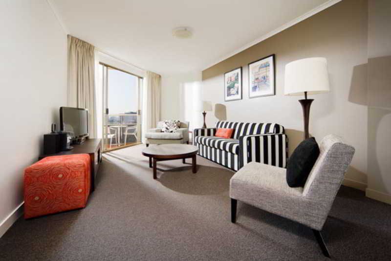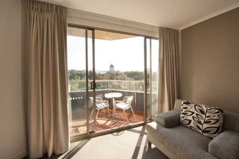 El hotel, orientado hacia los jardines Carlton y el edificio de exposiciones de Melbourne, es un establecimiento de estilo apartotel que consta de 144 apartamentos de uno y dos dormitorios independientes, adems de dos ticos. Otras instalaciones incluidas en este establecimiento climatizado son vestbulo con recepcin 24 horas, servicio de lavandera, caja fuerte y servicio de cambio de divisas entre otras cosas. La cafetera, el bar y el restaurante ofrecen comidas y bebidas. Se ofrecen instalaciones para conferencias para los clientes de negocios y los huspedes tambin pueden hacer uso del servicio de habitaciones, mientras que aquellos que lleguen en coche pueden dejarlo en el aparcamiento por un suplemento.