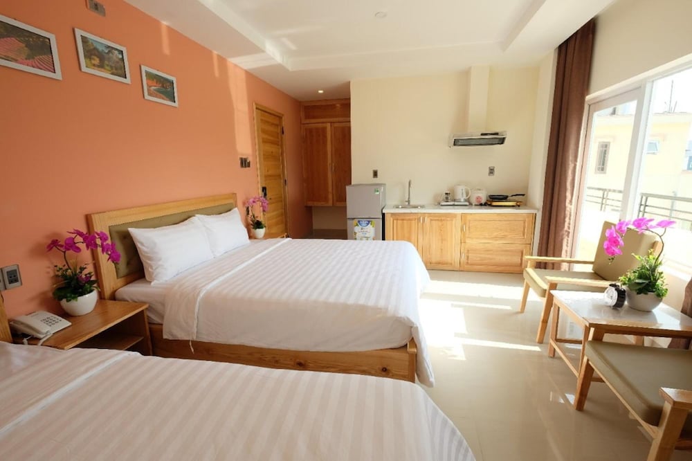 Si decides alojarte en Mari Gold Hotel & Apartment, disfrutarás de una fantástica ubicación en el centro de Da Nang y apenas te separarán diez minutos en coche de Museo de Escultura Cham y Parque del Mar del Este. Además, este hotel se encuentra a 9,4 km de Montañas de Mármol y a 0,4 km de Playa de Pham Van Dong. Te sentirás como en tu propia casa en cualquiera de las 30 habitaciones con aire acondicionado, minibar y televisor de pantalla plana. La conexión a Internet wifi gratis te mantendrá en contacto con los tuyos; también podrás ver tu programa favorito en el televisor con canales por cable. El baño privado con ducha está provisto de artículos de higiene personal gratuitos y secador de pelo. Entre las comodidades, se incluyen escritorio, cafetera y tetera y teléfono. Con bañera de hidromasaje y muchas otras instalaciones recreativas a tu disposición, no te quedará ni un minuto libre. Tienes también una terraza en la azotea donde sentarte a contemplar el paisaje. Encontrarás también conexión a Internet wifi gratis, televisor en zonas comunes y asistencia turística y para la compra de entradas. Puedes moverte fácilmente con el servicio de transporte disponible (de pago), que recorre una distancia de 20 kilometers. En Mari Gold Hotel & Apartment tienes un restaurante a tu disposición para comer algo. Se sirve un desayuno bufé caliente y frío gratuito todos los días de 6:30 a 9:30. Tendrás servicio de limusina o coche con chófer, periódicos gratuitos en el vestíbulo y servicio de recepción 24 horas a tu disposición. Pagando un pequeño suplemento podrás aprovechar prestaciones como servicio de transporte al aeropuerto (ida y vuelta) (disponible las 24 horas) y servicio de transporte al punto de embarque de cruceros.