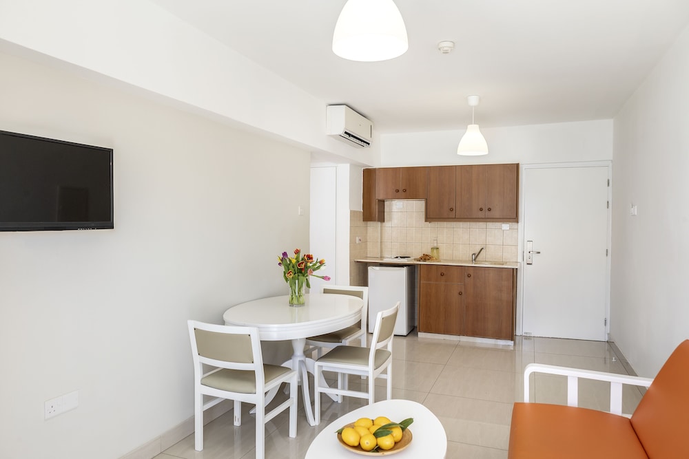 Alojándote en Marisa Apartments estarás en pleno corazón de Ayia Napa, a pocos pasos de Monasterio de Ayia Napa y de Museo Municipal THALASSA. Este complejo de apartamentos se encuentra cerca de Iglesia de la Virgen María y de Acueducto de Ayia Napa.Habitaciones Reserva una de las 18 habitaciones climatizadas dotadas de cocina. Las habitaciones disponen de balcón amueblado. Con televisor de pantalla plana y conexión a Internet wifi gratis, tienes para elegir a la hora de entretenerte. El baño privado está provisto de bañera profunda y artículos de higiene personal gratuitos.Servicios Aprovecha los prácticos servicios que se te ofrecen, como conexión a Internet wifi gratis, servicios de conserjería o televisor en zonas comunes.Servicios de negocios y otros Tendrás check-in rápido y atención multilingüe a tu disposición. Hay un aparcamiento sin asistencia gratuito disponible.