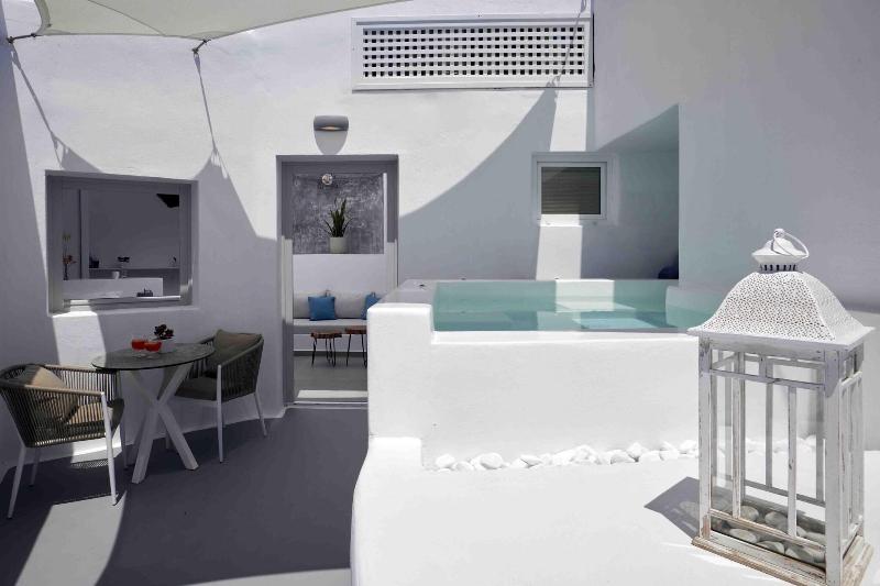 Este hotel, decorado al estilo típico de las Cícladas, se encuentra en Oia, a la entrada d...