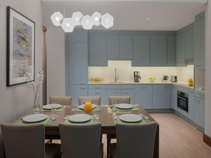 No te pierdas las oportunidades recreativas que incluyen una piscina cubierta y un sauna. Este hotel también ofrece acceso inalámbrico a internet de cortesía, servicios de conserjería y tiendas en el establecimiento. Los servicios destacados incluyen servicio de tintorería/lavandería, recepción disponible las 24 horas y resguardo de equipaje. Se ofrece traslado desde/hacia el aeropuerto en cortesía (disponible previa solicitud). Siéntete como en casa en una de las 164 habitaciones con aire acondicionado, que incluyen cafeteras espresso y televisores LED. El acceso inalámbrico a internet de cortesía te mantiene conectado y la programación por cable está disponible para tu entretenimiento. Los baños disponen de bidés y secadores de pelo. Las comodidades incluyen teléfonos, así como cajas fuertes y escritorios. Las distancias se muestran con una precisión de 0. 1 millas y kilómetros. Parque Al Shaheed: 1 km / 0. 6 mi- Al Hamra Tower & Shopping Center: 1 km / 0. 6 mi- Museo de Ciencias e Historia Natural: 1. 5 km / 0. 9 mi- Zoco Al Mubarakiya: 1. 9 km / 1. 2 mi- Liberation Tower: 1. 9 km / 1. 2 mi- Gran Mezquita: 2 km / 1. 2 mi- Beit Dickson: 2 km / 1. 2 mi- Museo Marítimo: 2 km / 1. 3 mi- Centro Comercial Souq Sharq: 2. 1 km / 1. 3 mi- Museo de Arte Moderno: 2. 1 km / 1. 3 mi- Complejo de Ministerios: 2. 5 km / 1. 5 mi- Palacio Seif: 2. 7 km / 1. 7 mi- Beit al-Badr: 2. 8 km / 1. 7 mi- Espectáculo de Música y Agua: 2. 8 km / 1. 8 mi- Complejo del Museo Nacional: 2. 9 km / 1. 8 mi. El aeropuerto principal más cercano a Marriott Executive Apartments Kuwait City es Aeropuerto Internacional de Kuwait (KWI): 20. 2 km / 12. 5 mi. Al hospedarte en Marriott Executive Apartments Kuwait City, estarás en el centro de la ciudad de Kuwait, a 15 minutos a pie del Parque Al Shaheed y del Al Hamra Tower & Shopping Center. Este hotel de lujo se encuentra a 2. 5 km (1. 5 mi) de Liberation Tower y a 2. 5 km (1. 5 mi) del Museo Marítimo.