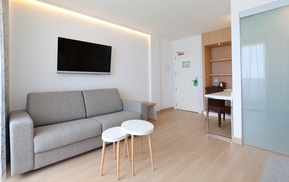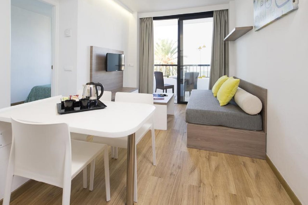 The Marvell Apartments is located 500 m from the beach, 4 km from San Antonio and about 25 km from the airport. The facilities include 24h reception, restaurant, bar, pool, children’s pool, table tennis, billiards, internet (extra charge), supermarket and car rental. The apartments are equipped with bathroom (bath/shower), living room with sofa-bed, TV, telephone, kitchenette, microwave, safe (extra charge), A/C and balcony/terrace.In case of choosing the option of "all inclusive":The All Inclusive-concept includes all meals (breakfast, lunch, dinner and snacks) and mealtime drinks such as soft drinks, beer, wine, water and alcoholic drinks, all of local brands. Drinks are served from morning until late evening (approx until 22.-24.00 hrs). Opening times vary between different hotels. In certain hotels the activities program is also included.Address: Avda. Es Calo s/n, 07820 Bay of San Antonio, Ibiza, Spain