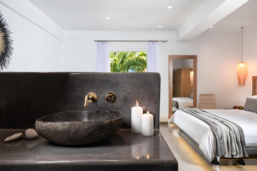 Mediterranean White Hotel es un hotel boutique de 4 estrellas ubicado en Ag.Paraskevi-Kamari, a una distancia de 150 metros de la famosa Playa Negra de Santorini.