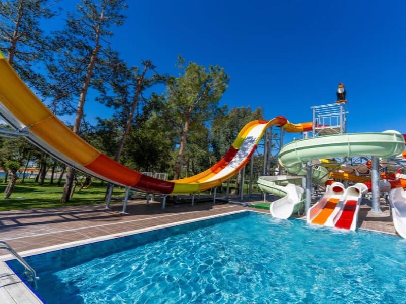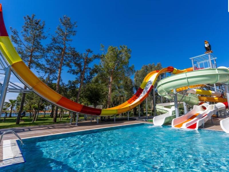 Enclavado entre un exuberante bosque y las aguas azules de Titreyengöl, el Megasaray Resort Side ofrece una escapada inolvidable donde la tranquilidad se une a la recreación. Ubicado en una extensa finca de 17 hectáreas en Antalya, Side, este complejo de 346 habitaciones ofrece un remanso de paz y belleza natural. Como parte del prestigioso grupo Megasaray Hotels, el complejo mantiene el servicio de alta calidad por el que la marca es conocida. Disfruta de la prístina playa privada de arena, a solo 250 metros, y del sol mediterráneo. El complejo con todo incluido ofrece servicio de bufé abierto para todas las comidas, mientras que sus restaurantes a la carta deleitan el paladar con diversos menús inspirados en la cocina internacional.
