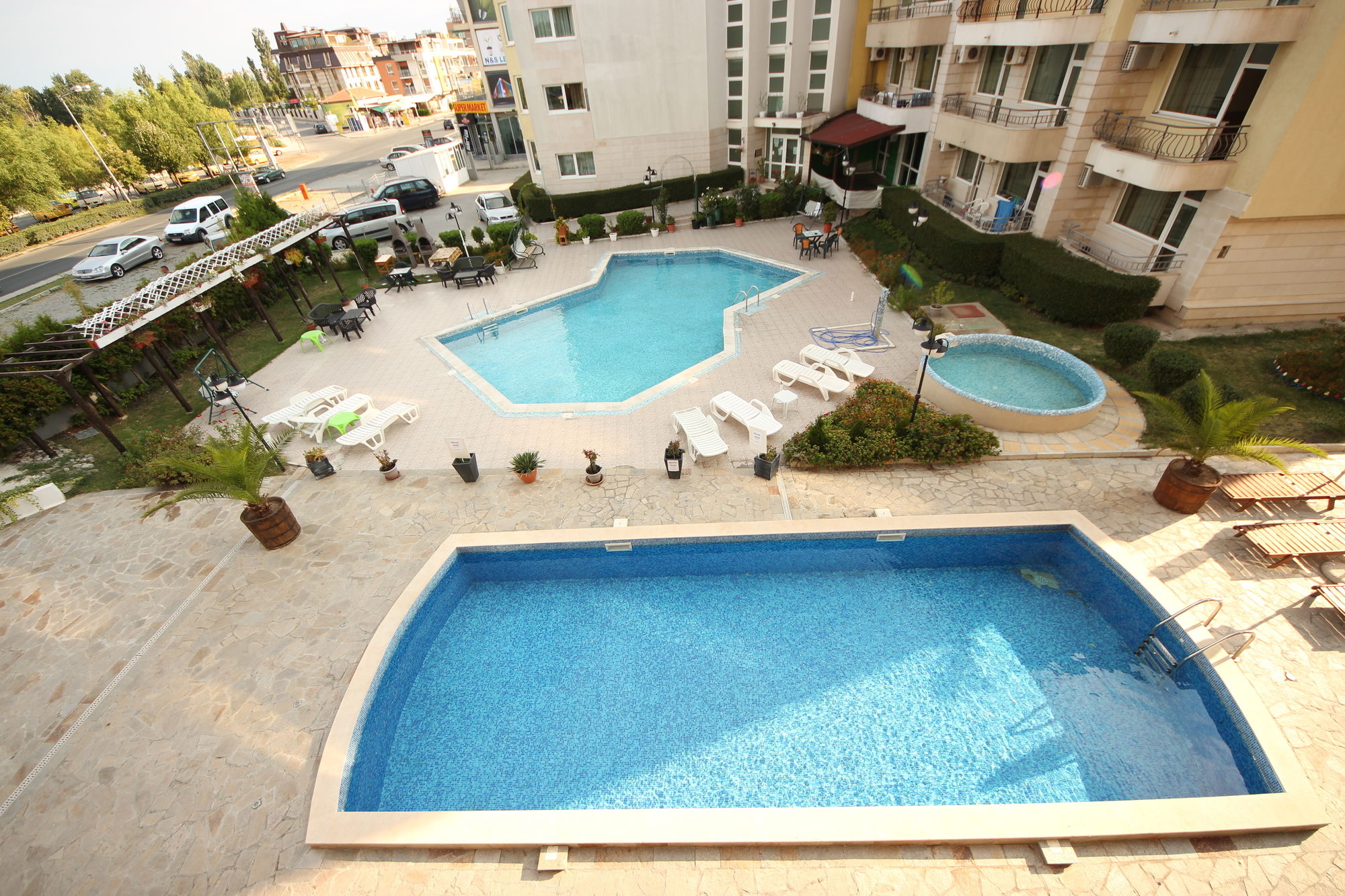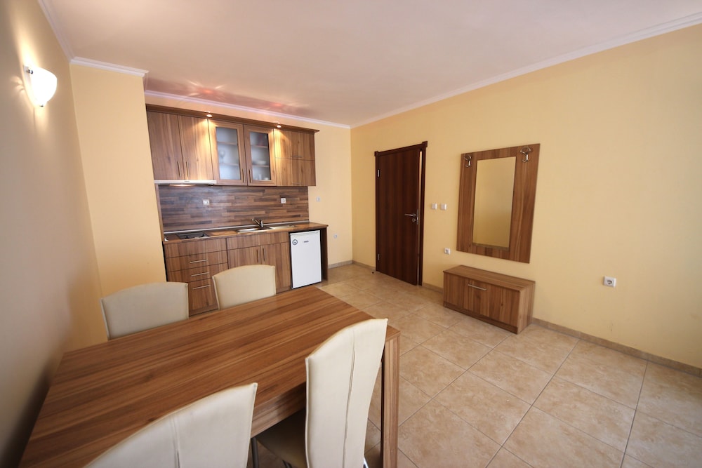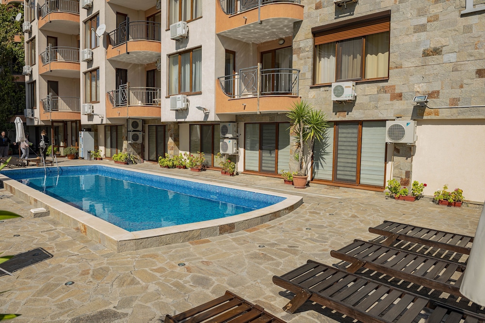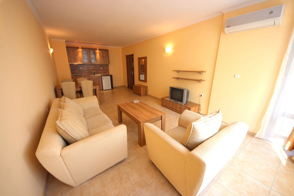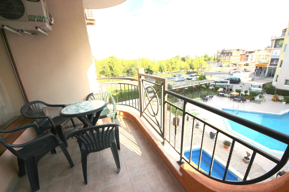 En Menada Sea Regal Apartments gozarás de una buena ubicación en Sunny Beach, cerca de la playa, desde donde podrás llegar cómodamente a Estadio Nessebar y Sunny Beach. Este complejo de apartamentos se encuentra cerca de Parque Luna y de Museo Arqueológico.Habitaciones Reserva una de las habitaciones climatizadas con cocina básica y disfruta de una estancia inolvidable. Las habitaciones disponen de balcón amueblado. La conexión a Internet wifi (de pago) te mantendrá en contacto con los tuyos; también podrás ver tu programa favorito en el televisor con canales por cable. Las comodidades incluyen frigorífico y sofá cama, además de un servicio de limpieza disponible cada semana.Servicios Con piscina al aire libre de temporada y asistencia turística y para la compra de entradas, entre muchas otras prestaciones, aquí tendrás todo lo que necesitas.Servicios de negocios y otros Pagando un pequeño suplemento podrás aprovechar prestaciones como servicio de transporte al aeropuerto (ida y vuelta) (disponible las 24 horas) y aparcamiento sin asistencia gratuito.