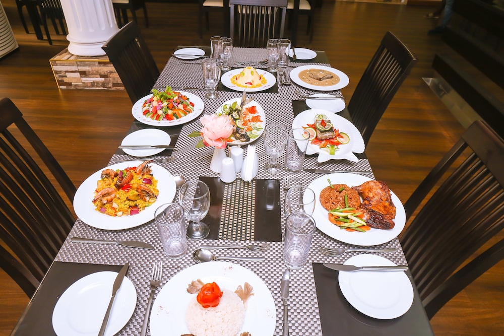 Desde Mendiata Hotel, en Acra, tendrás fácil acceso a Club de golf Achimota y a Parque Achimota Forest. Este hotel se encuentra cerca de Centro zoológico y de cría de primates amenazados de Acra y de Centro comercial Achimota Mall. Te sentirás como en tu propia casa en cualquiera de las 34 habitaciones con aire acondicionado, frigorífico y televisor de pantalla plana. La conexión a Internet wifi gratis te mantendrá en contacto con los tuyos; también podrás ver tu programa favorito en el televisor con canales por cable. El cuarto de baño está provisto de bañera o ducha y artículos de higiene personal gratuitos. Entre las comodidades, se incluyen caja fuerte y escritorio, además de un servicio de limpieza disponible todos los días. Elige entre las numerosas instalaciones recreativas ofrecidas, que incluyen piscina al aire libre y gimnasio. Se ofrece además conexión a Internet wifi gratis y servicios de conserjería. Prueba deliciosos platos sin moverte de este hotel, que cuenta con un restaurante y ofrece servicio de habitaciones con horario limitado. Disfruta de tu bebida favorita en el bar o lounge o en el bar junto a la piscina. Tendrás centro de negocios, periódicos gratuitos en el vestíbulo y servicio de tintorería a tu disposición. Se ofrece servicio de transporte al aeropuerto (ida y vuelta) gratuito a petición.