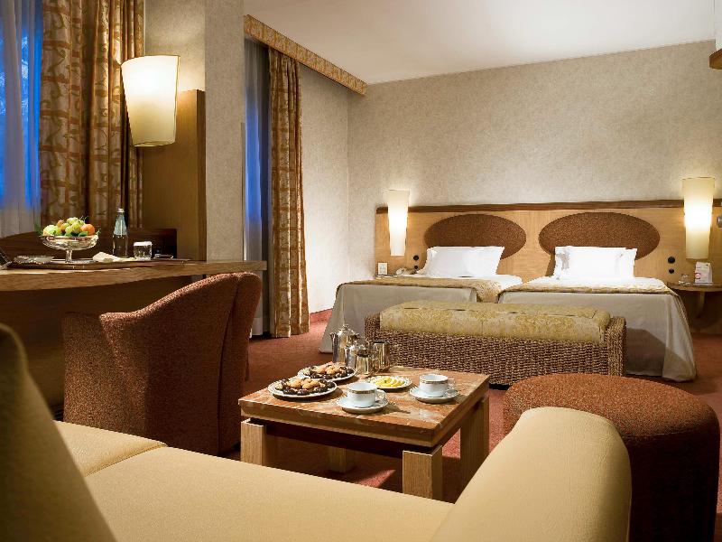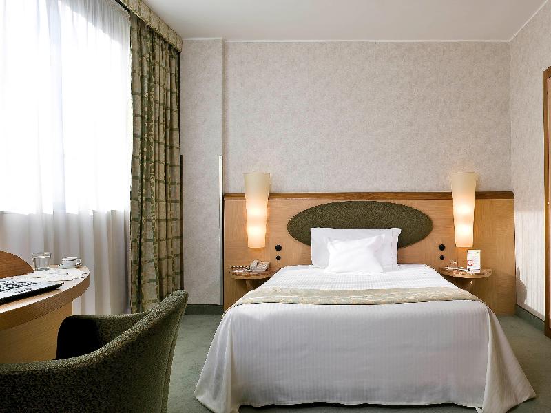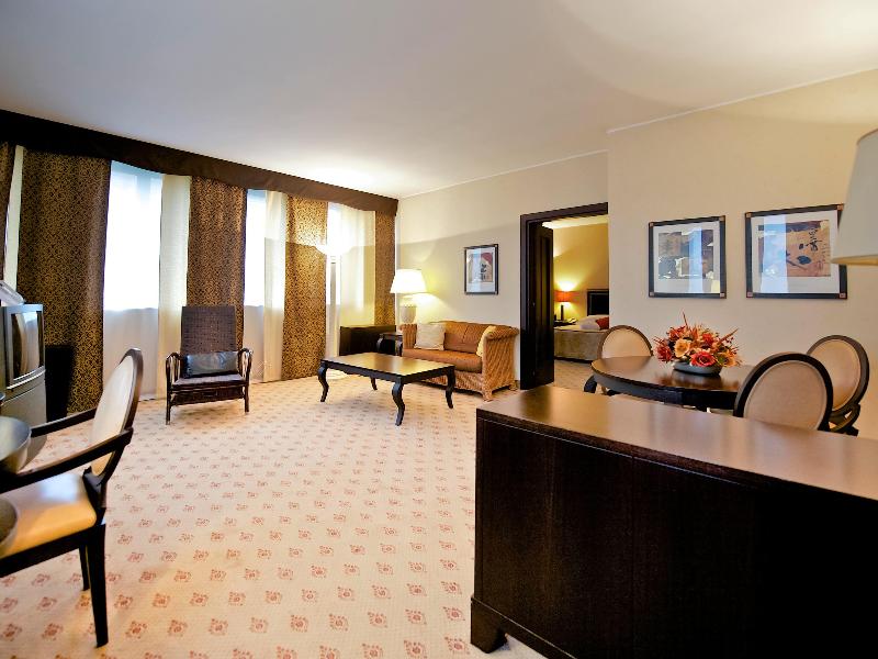 Este moderno y elegante hotel de 4 estrellas está situado cerca del distrito EUR, el nuevo centro de exposiciones Fiera di Roma, el PalaLottomatica y el aeropuerto de Fiumicino. También está a solo 20 minutos del centro de la ciudad. El hotel ofrece 215 habitaciones con Sky TV, un centro de convenciones, wifi gratuito y un amplio aparcamiento interior gratuito. Un servicio de traslado gratuito funciona a diario desde y hacia el aeropuerto de Fiumicino y la estación de metro EUR Fermi entre las 7:30 y las 22:00, en horarios programados. Este servicio está disponible bajo petición y sujeto a disponibilidad (contacta con el hotel para consultar los horarios e información adicional). Ten en cuenta que la piscina cubierta y el spa están cerrados temporalmente y que se aplican tarifas de entrada.