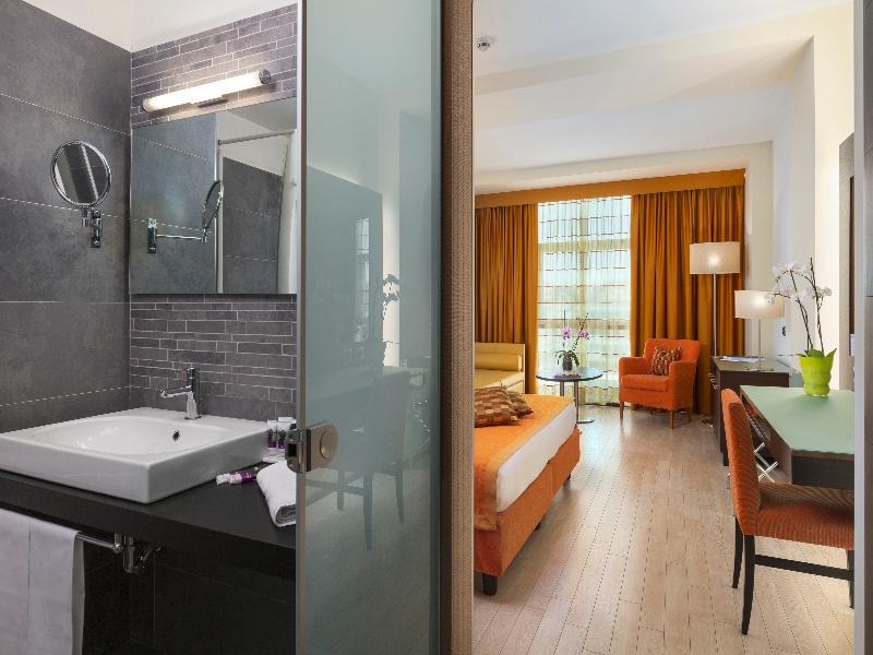 El moderno y confortable Mercure Siracusa Prometeo ofrece 93 habitaciones con todas las comodidades que se esperan de un hotel de 4 estrellas. Todas las habitaciones disponen de televisores LCD y las habitaciones ejecutivas y suites cuentan con bañera de hidromasaje. El hotel está situado en el centro de la ciudad, frente al Parque Arqueológico y el Teatro Griego, y a pocos minutos en coche de la Isla de Ortigia. El hotel dispone de bar/bistró, salas de reuniones, piscina, solárium, centro de bienestar, aparcamiento y garaje. Se pueden reservar dos suites contactando directamente con el hotel. CIN CODE: IT089017A1HWAYLUVH