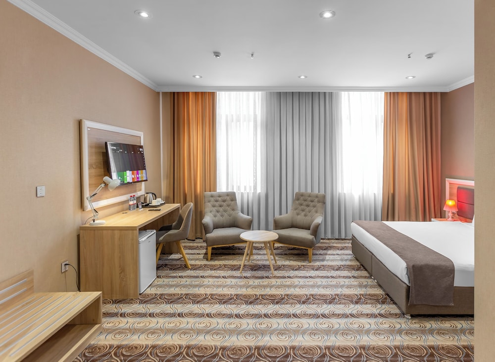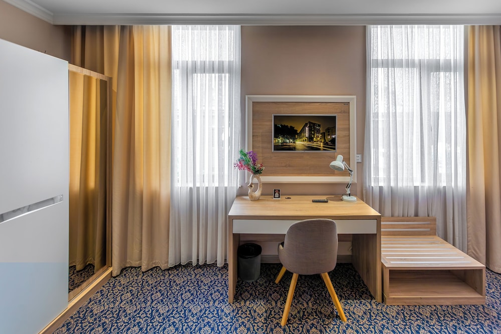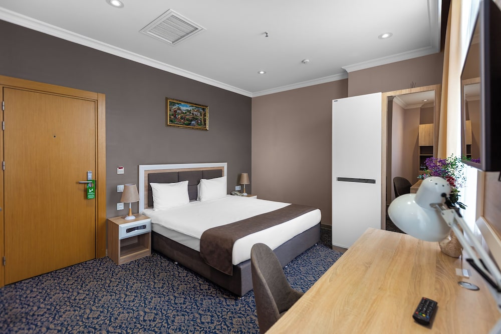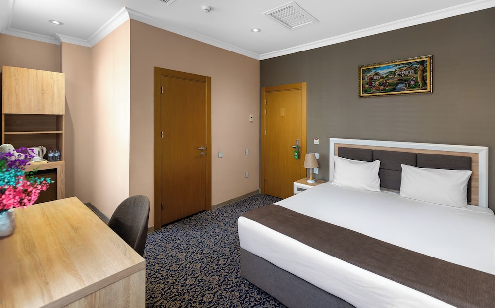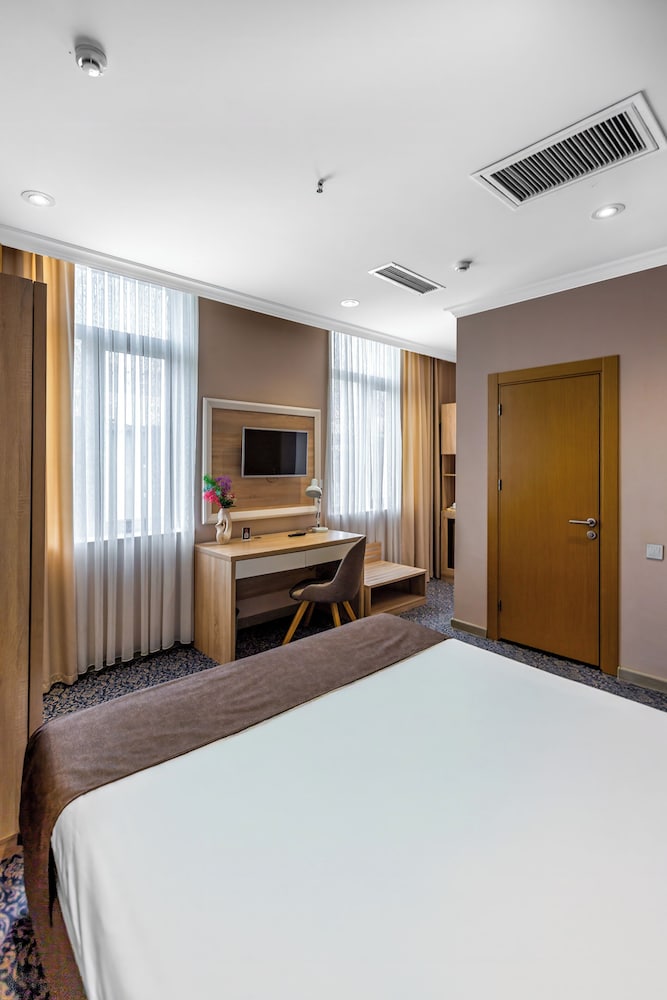 En Bakú, Metro City Hotel te permite llegar cómodamente a Centro comercial Metropark y a Centro Cultural Haydar Aliyev. Este hotel de 4 estrellas se encuentra muy cerca de Estadio Tofik Bakhramov y Centro comercial Azure. Te sentirás como en tu propia casa en cualquiera de las 67 habitaciones con aire acondicionado, minibar y televisor de plasma. La conexión a Internet wifi gratis te mantendrá en contacto con los tuyos; también podrás ver tu programa favorito en el televisor con canales por cable. El baño privado con ducha está provisto de artículos de higiene personal gratuitos y secador de pelo. Entre las comodidades, se incluyen caja fuerte y escritorio, además de un servicio de limpieza disponible todos los días. Para un relax sin igual, nada como una visita al spa, que ofrece masajes. En tus ratos libres aprovecha las instalaciones recreativas, que incluyen piscina cubierta y gimnasio abierto las 24 horas. Se ofrece además conexión a Internet wifi gratis y servicios de conserjería. Prueba deliciosos platos sin moverte de este hotel, que cuenta con un restaurante y ofrece servicio de habitaciones las 24 horas. Apaga la sed con tu bebida favorita en el bar junto a la piscina. Se sirve un desayuno bufé gratuito todos los días de 8:00 a 11:00. Tendrás servicio de recepción 24 horas, consigna de equipaje y lavandería a tu disposición. Pagando un pequeño suplemento podrás aprovechar prestaciones como servicio de transporte desde el aeropuerto hasta el hotel (disponible las 24 horas) y aparcamiento sin asistencia gratuito.