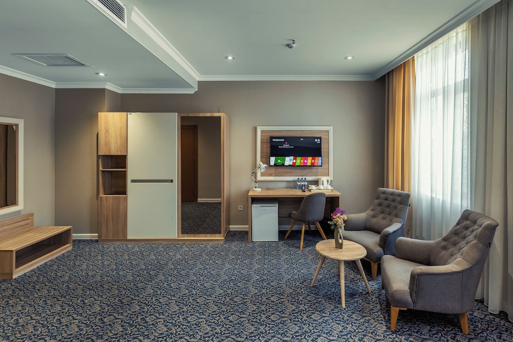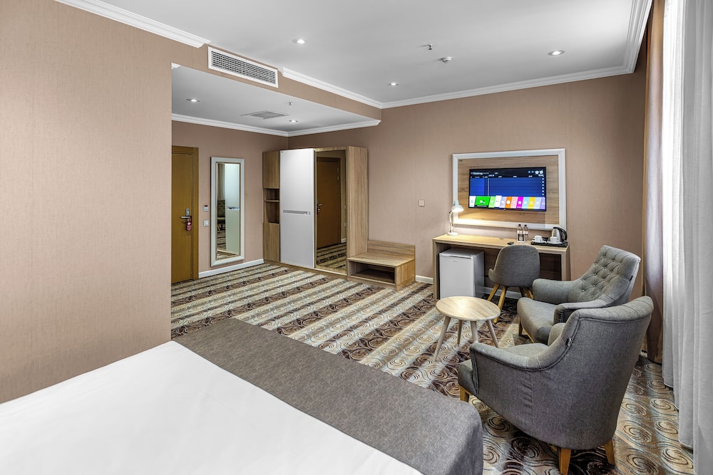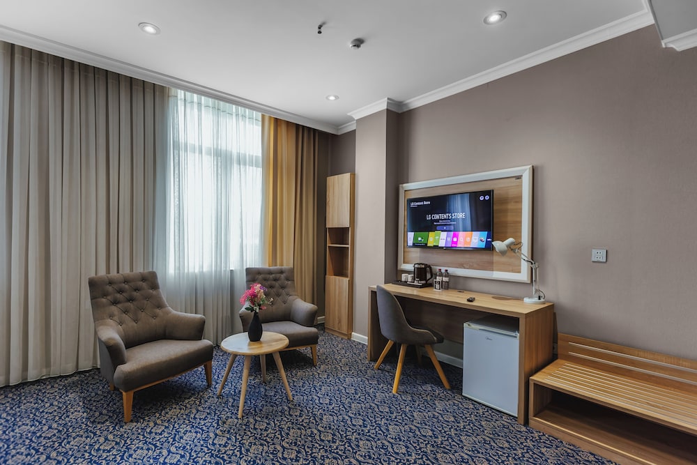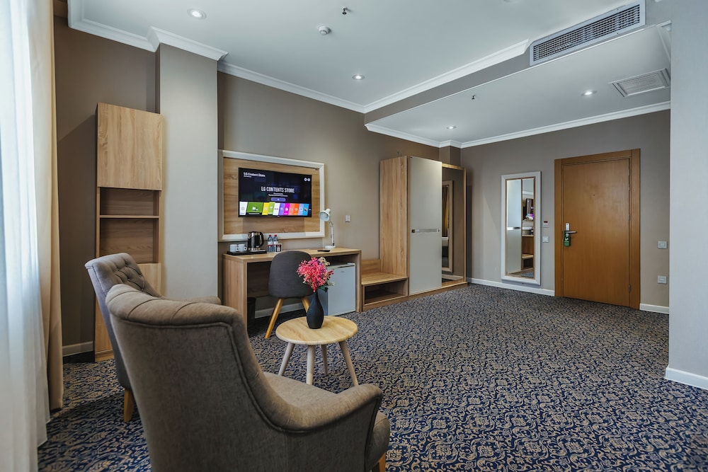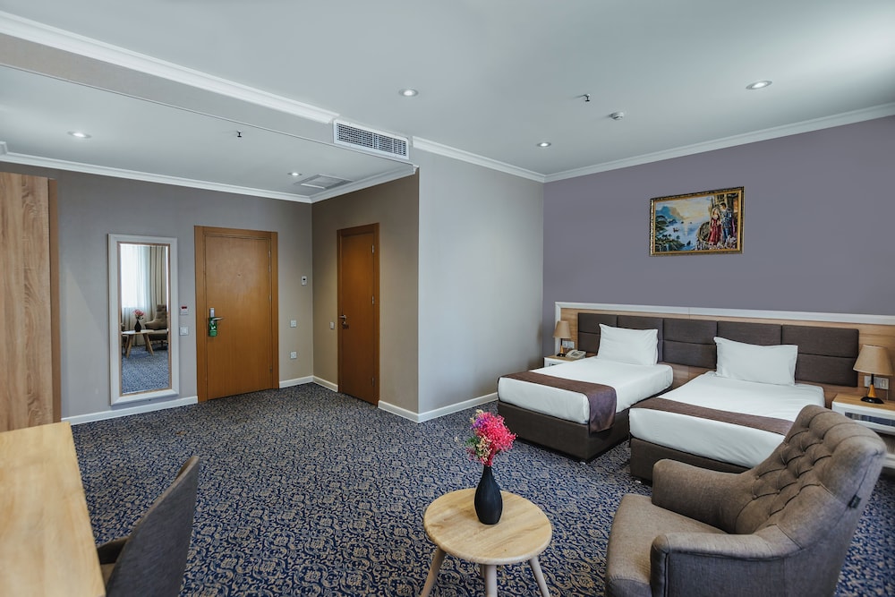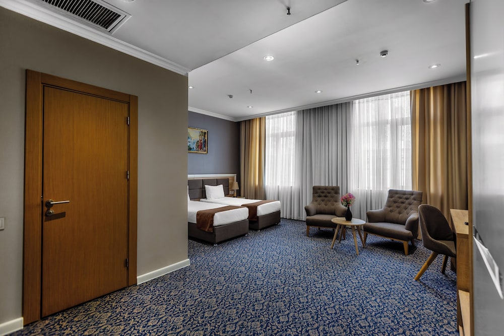 En Bakú, Metro City Hotel te permite llegar cómodamente a Centro comercial Metropark y a Centro Cultural Haydar Aliyev. Este hotel de 4 estrellas se encuentra muy cerca de Estadio Tofik Bakhramov y Centro comercial Azure. Te sentirás como en tu propia casa en cualquiera de las 67 habitaciones con aire acondicionado, minibar y televisor de plasma. La conexión a Internet wifi gratis te mantendrá en contacto con los tuyos; también podrás ver tu programa favorito en el televisor con canales por cable. El baño privado con ducha está provisto de artículos de higiene personal gratuitos y secador de pelo. Entre las comodidades, se incluyen caja fuerte y escritorio, además de un servicio de limpieza disponible todos los días. Para un relax sin igual, nada como una visita al spa, que ofrece masajes. En tus ratos libres aprovecha las instalaciones recreativas, que incluyen piscina cubierta y gimnasio abierto las 24 horas. Se ofrece además conexión a Internet wifi gratis y servicios de conserjería. Prueba deliciosos platos sin moverte de este hotel, que cuenta con un restaurante y ofrece servicio de habitaciones las 24 horas. Apaga la sed con tu bebida favorita en el bar junto a la piscina. Se sirve un desayuno bufé gratuito todos los días de 8:00 a 11:00. Tendrás servicio de recepción 24 horas, consigna de equipaje y lavandería a tu disposición. Pagando un pequeño suplemento podrás aprovechar prestaciones como servicio de transporte desde el aeropuerto hasta el hotel (disponible las 24 horas) y aparcamiento sin asistencia gratuito.