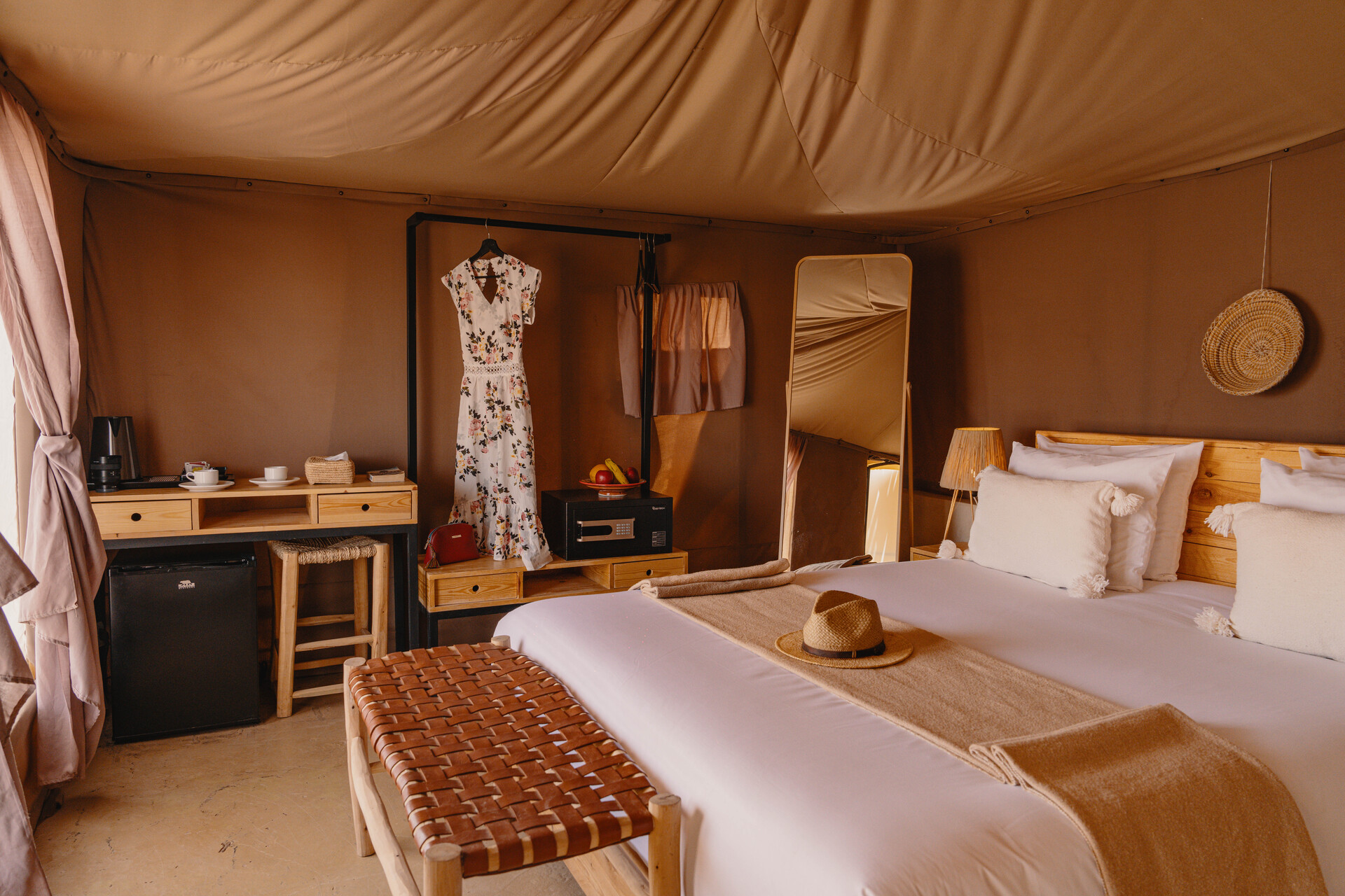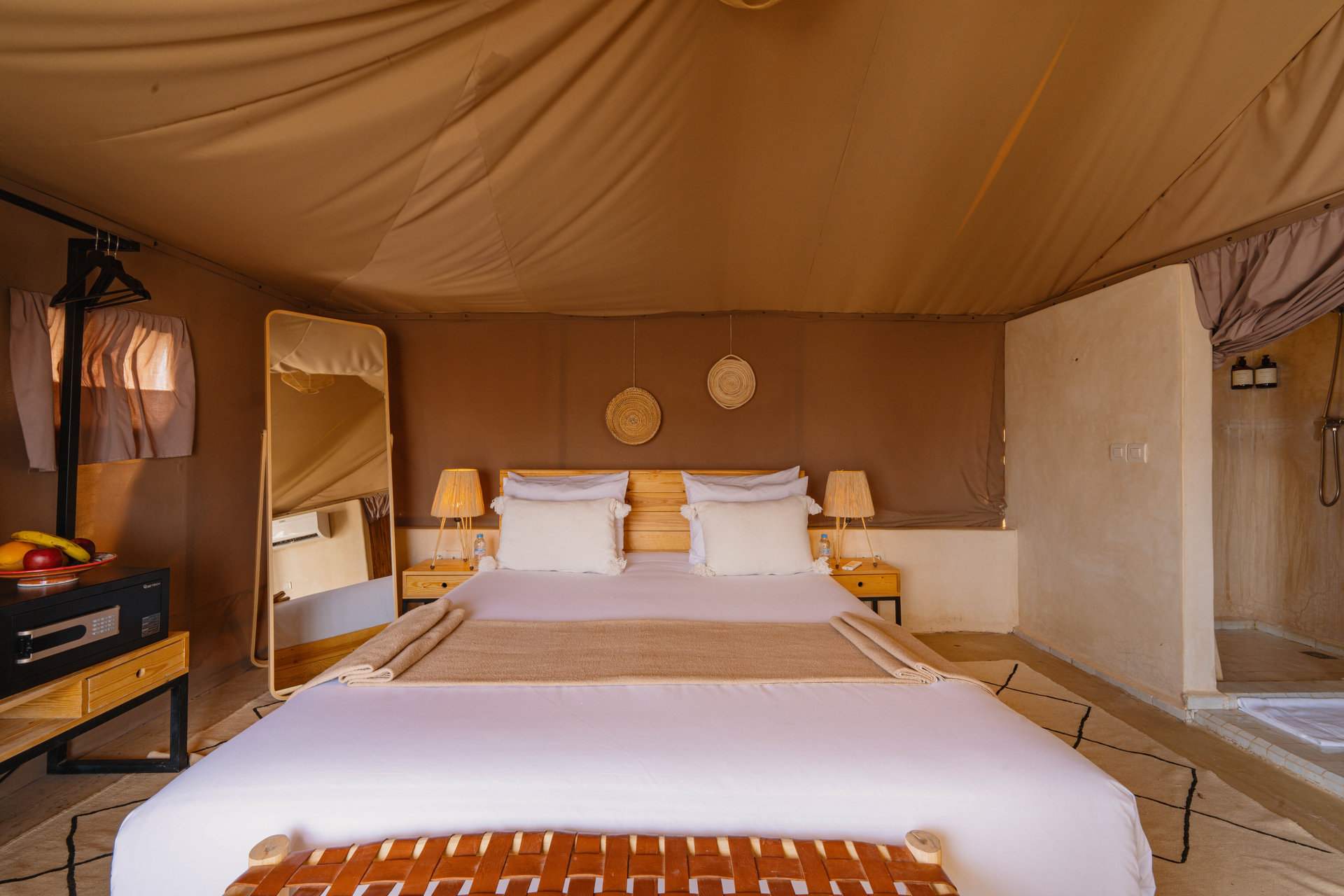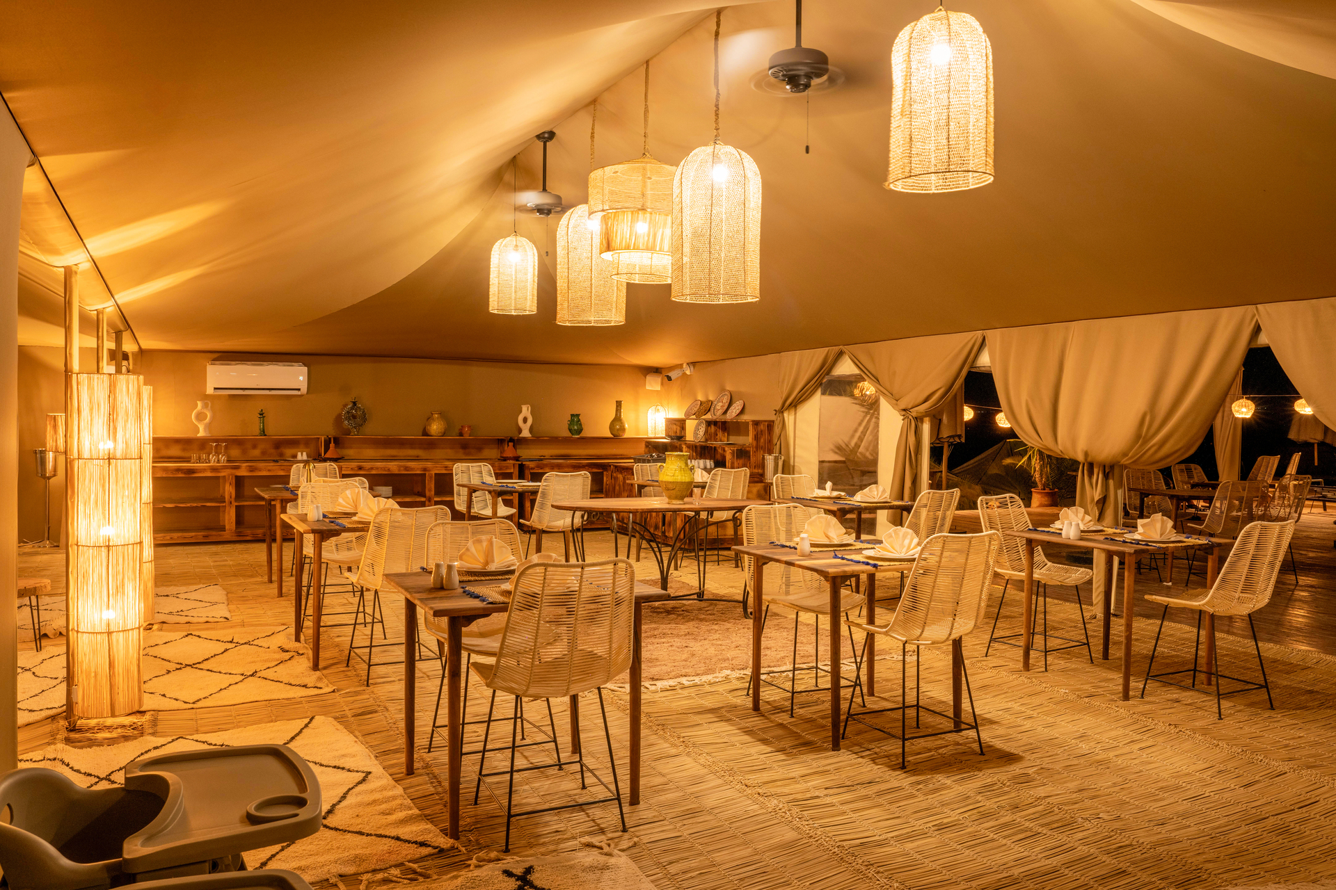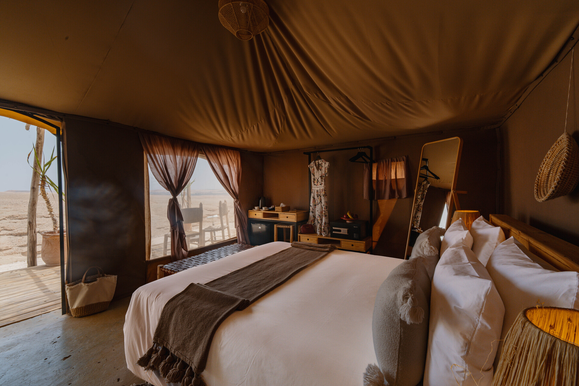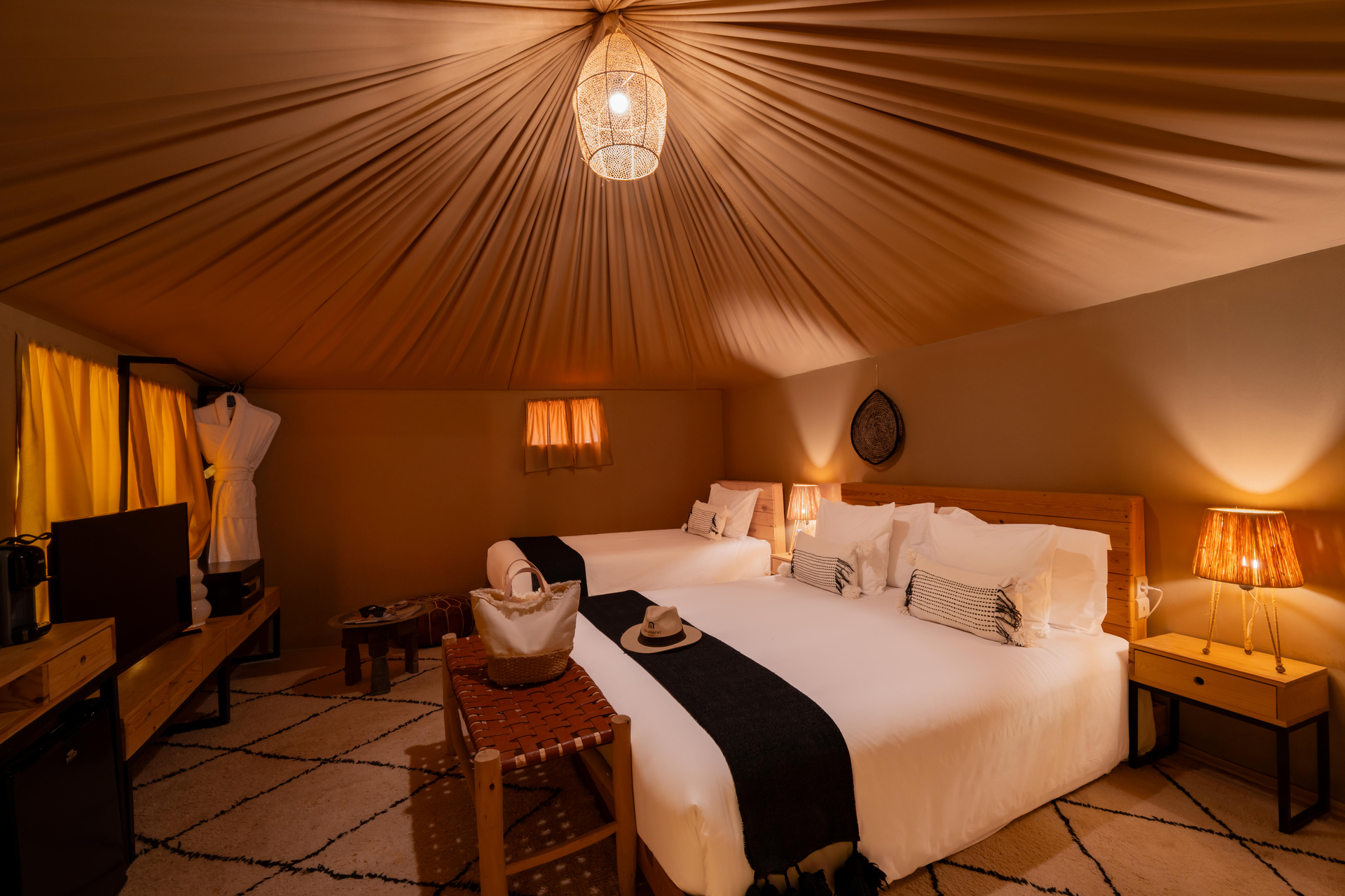 Entre el hotel y el aeropuerto opera un servicio de traslado durante 24 horas al día. Este hotel halal Mia Agafay Resort con aire acondicionado y verificado por GPS está equipado con una recepción abierta las 24 horas del día (posibilidad de registrarse las 24 horas del día), conexión WiFi, conexión a Internet, un supermercado y un quiosco, una boutique, ducha y vestuarios, un botiquín, aparcamiento y una sala de televisión con SAT-TV. En la parte exterior hay una piscina de temporada (abierto todo el año), en la cual puede disponerse de hamacas, sombrillas y toallas de baño gratuito. Además, al aire libre encontrará una terraza soleada. Asimismo, dispone de un cajero automático. Puede guardar sus objetos de valor en la caja fuerte del hotel. Además, el hotel videovigilado las 24 horas. Pueden proporcionarse para los más pequeños cunas, sillas altas y sillas para niños. Para su ropa, hay a su disposición un servicio de planchado. Además del botones del hotel y del servicio de conserjería se ocupa de su comodidad. En caso de necesidad puede dirigirse al servicio médico. El voltaje del hotel es de 220 voltios. Si desea explorar la región de sus vacaciones, puede utilizar el servicio de alquiler de coches y motos próximo al hotel. En la recepción se venden entradas para excursiones por los alrededores. Para quienes disfrutan de su viaje de novios, el hotel tiene preparadas algunas ofertas especiales como, por ejemplo, una habitación decorada de forma romántica, habitaciones con una ubicación especialmente romántica y vistas, paquetes especiales de luna de miel, platos románticos en el restaurante, un regalo, una cesta de frutas o flores sobre la cama. En su hotel de vacaciones se da mucho valor a la sostenibilidad. A este propósito responden, entre otros, la provisión de expendedores de jabón y champú, comida ecológica y alimentos orgánicos y un sistema de limpieza compatible con el medio ambiente. Los huéspedes del hotel deben depositar un depósito a su llegada al hotel. Se aceptan American Express, Euro/Master Card o Visa como método de pago.