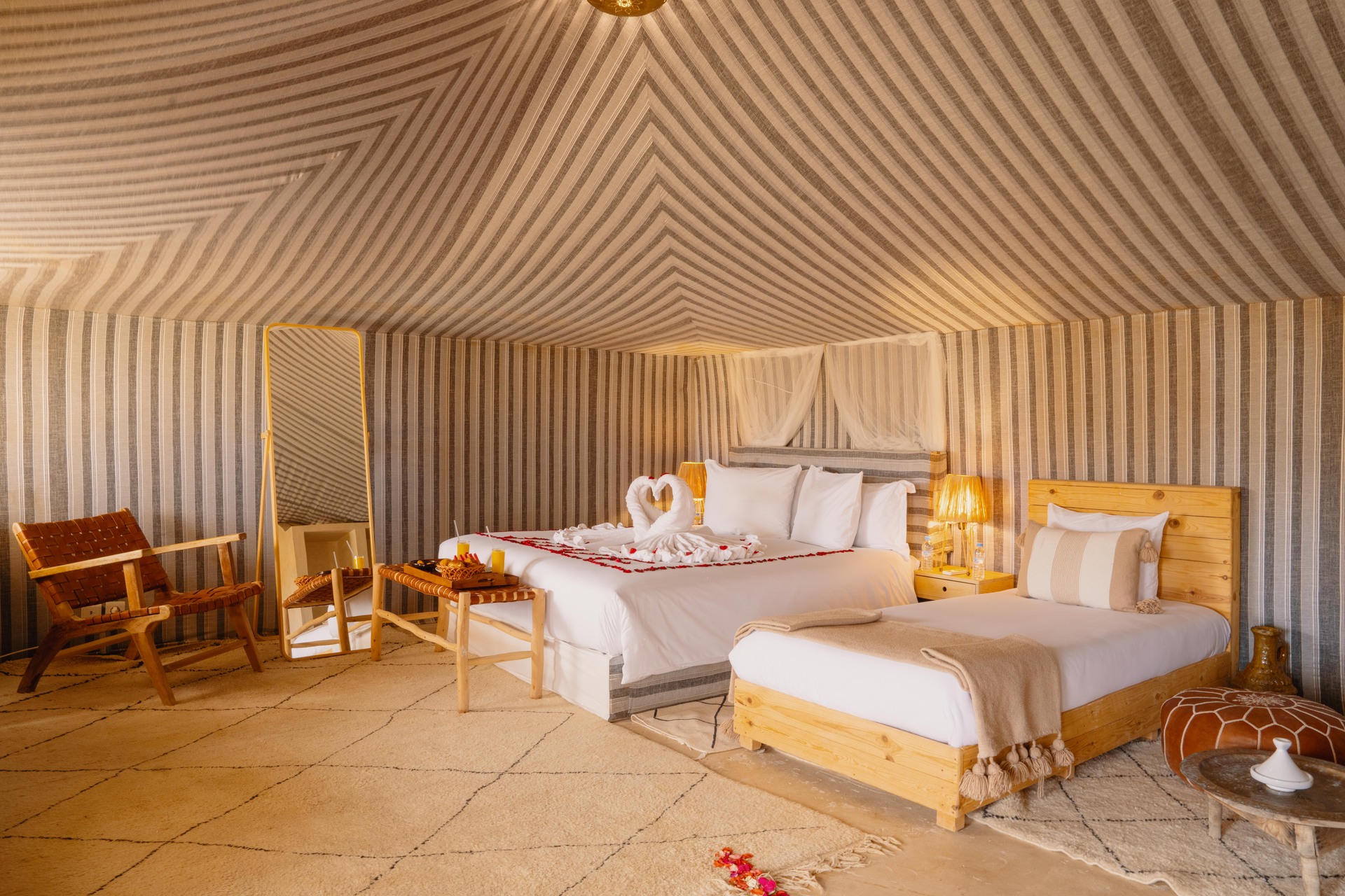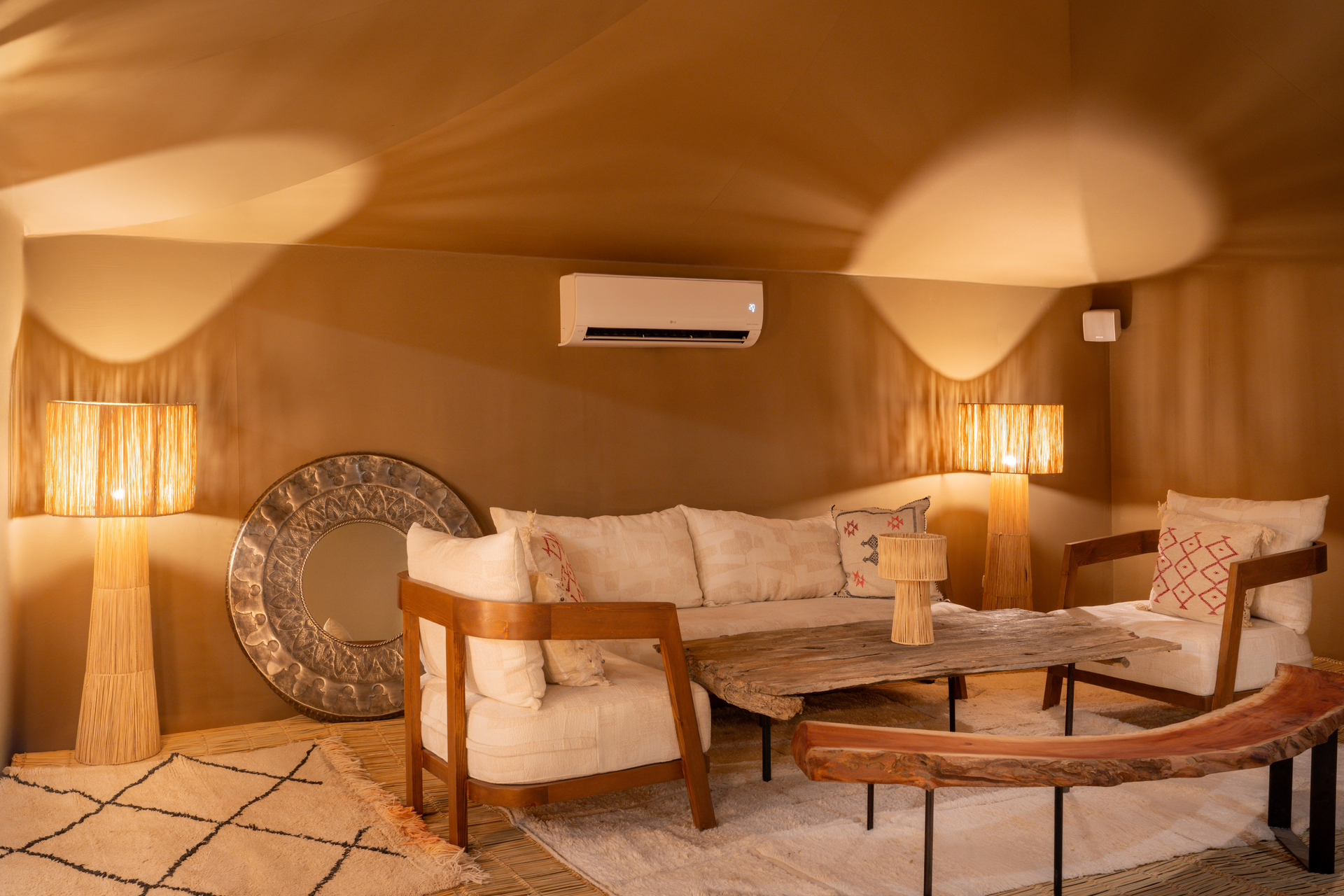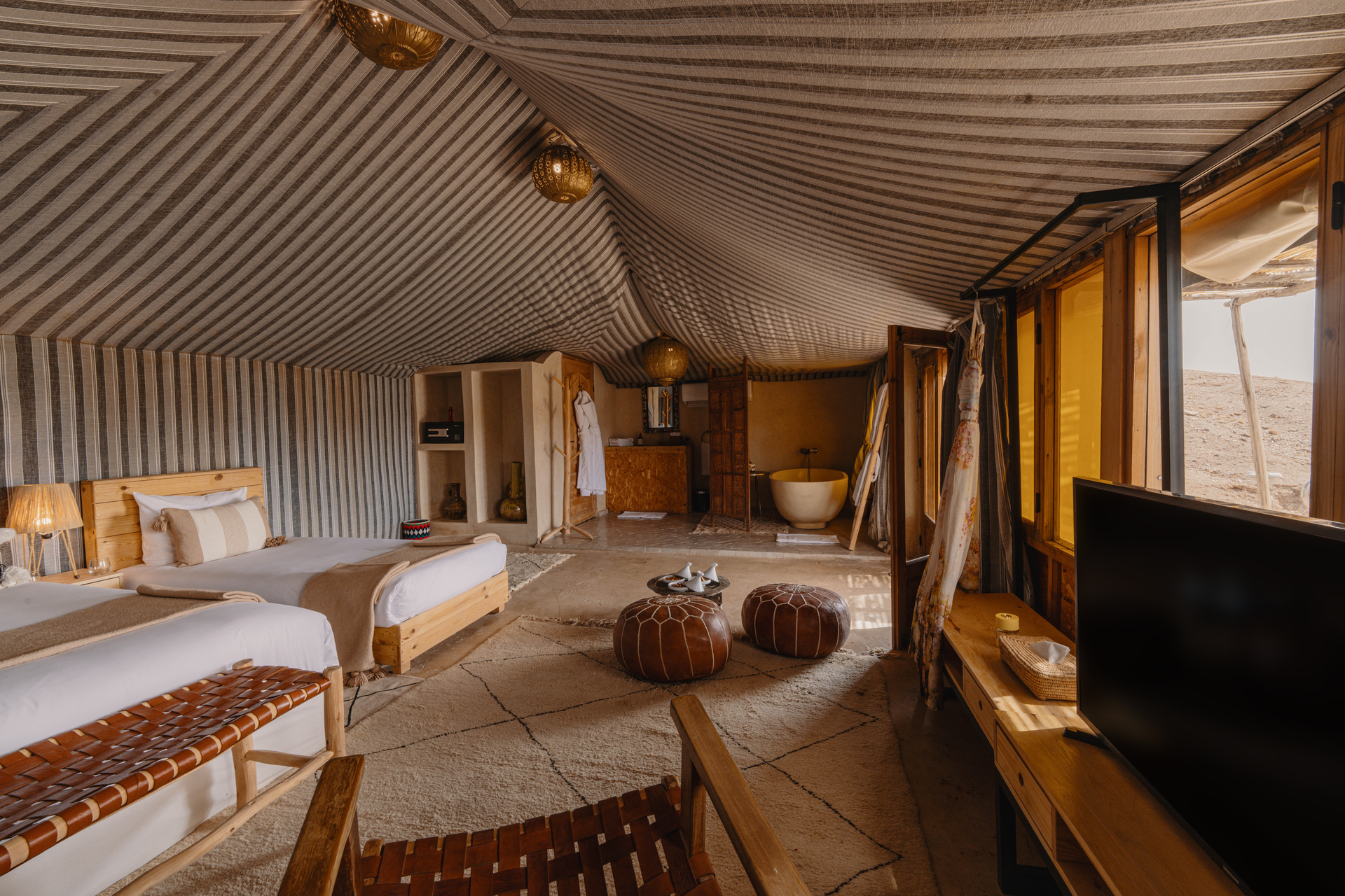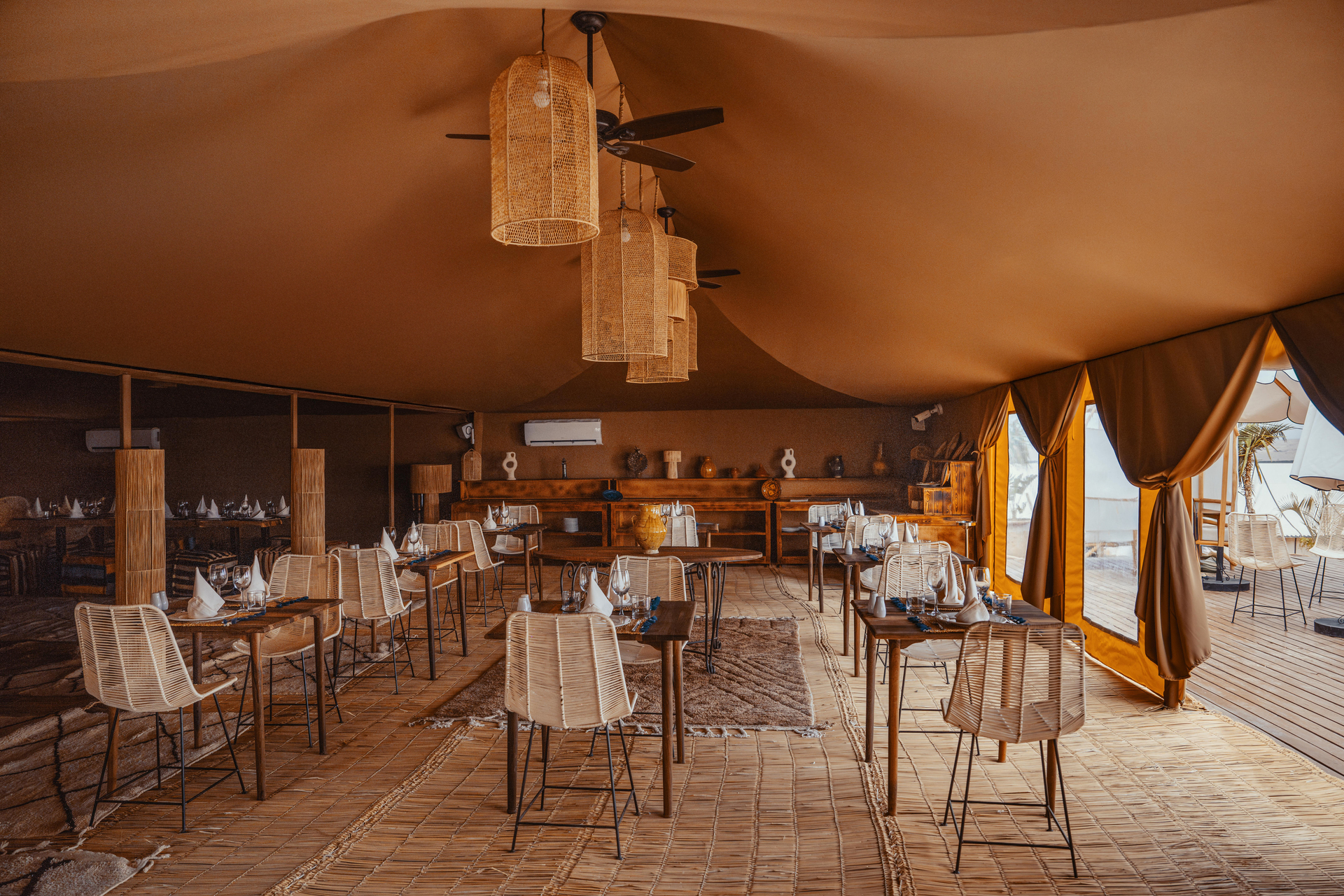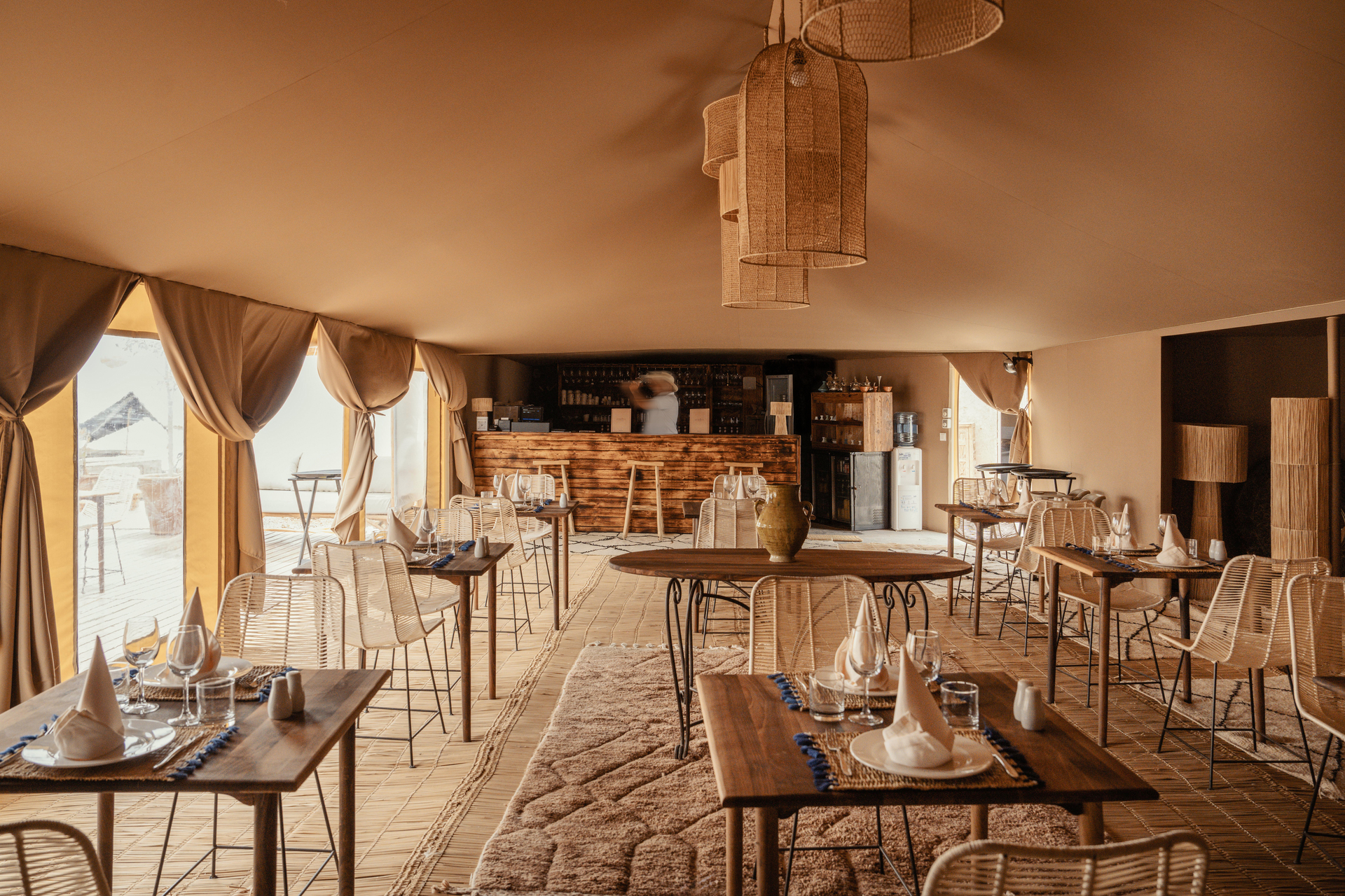Entre el hotel y el aeropuerto opera un servicio de traslado durante 24 horas al día. Este hotel halal Mia Agafay Resort con aire acondicionado y verificado por GPS está equipado con una recepción abierta las 24 horas del día (posibilidad de registrarse las 24 horas del día), conexión WiFi, conexión a Internet, un supermercado y un quiosco, una boutique, ducha y vestuarios, un botiquín, aparcamiento y una sala de televisión con SAT-TV. En la parte exterior hay una piscina de temporada (abierto todo el año), en la cual puede disponerse de hamacas, sombrillas y toallas de baño gratuito. Además, al aire libre encontrará una terraza soleada. Asimismo, dispone de un cajero automático. Puede guardar sus objetos de valor en la caja fuerte del hotel. Además, el hotel videovigilado las 24 horas. Pueden proporcionarse para los más pequeños cunas, sillas altas y sillas para niños. Para su ropa, hay a su disposición un servicio de planchado. Además del botones del hotel y del servicio de conserjería se ocupa de su comodidad. En caso de necesidad puede dirigirse al servicio médico. El voltaje del hotel es de 220 voltios. Si desea explorar la región de sus vacaciones, puede utilizar el servicio de alquiler de coches y motos próximo al hotel. En la recepción se venden entradas para excursiones por los alrededores. Para quienes disfrutan de su viaje de novios, el hotel tiene preparadas algunas ofertas especiales como, por ejemplo, una habitación decorada de forma romántica, habitaciones con una ubicación especialmente romántica y vistas, paquetes especiales de luna de miel, platos románticos en el restaurante, un regalo, una cesta de frutas o flores sobre la cama. En su hotel de vacaciones se da mucho valor a la sostenibilidad. A este propósito responden, entre otros, la provisión de expendedores de jabón y champú, comida ecológica y alimentos orgánicos y un sistema de limpieza compatible con el medio ambiente. Los huéspedes del hotel deben depositar un depósito a su llegada al hotel. Se aceptan American Express, Euro/Master Card o Visa como método de pago.