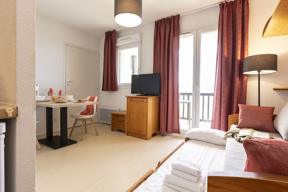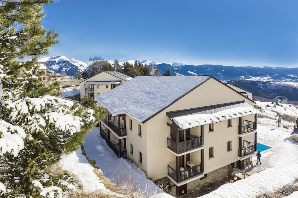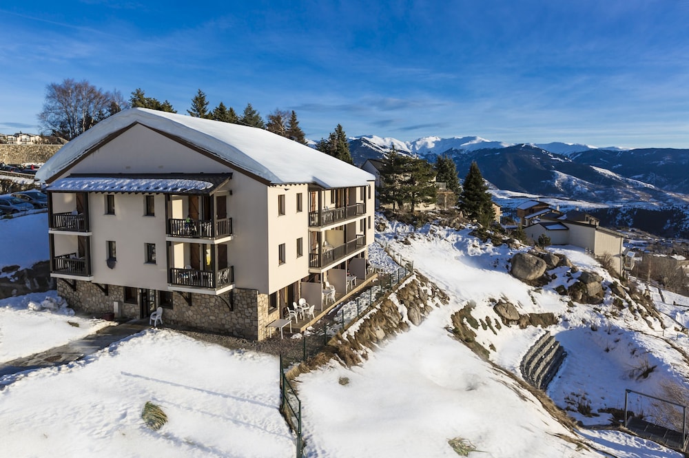Situado en una tranquila zona residencial, el atractivo apartahotel Mille Soleils goza de una buena ubicación en el popular complejo hotelero de Font Romeu, en los Pirineos Occidentales, donde hace sol 300 días al año. Se encuentra a solo unos pocos minutos a pie del centro de la ciudad y de las tiendas más cercanas, mientras que el telecabina proporciona acceso a la zona de esquí Pyrénées 2000, a unos 900 metros del establecimiento. España y Andorra están a poca distancia en coche.El hotel ofrece estudios y apartamentos espaciosos, con capacidad de hasta 8 personas. Dispone de una decoración agradable y cómoda, con una pequeña cocina completamente equipada y unas vistas maravillosas de los majestuosos picos pirenaicos. El hotel ofrece una piscina climatizada parcialmente cubierta, taquillas de esquí y conexión a Internet WiFi en recepción. Hay un servicio municipal de transporte en minibus a los telecabinas. Se trata de una elección fantástica para las familias y grupos de amigos que deseen disfrutar de unas vacaciones de esquí.