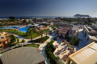 El hotel esta situado en la region turistica de Platanias, a 12 km al oeste del centro de la ciudad de La Canea y a 24 km del aeropuerto internacional de La Canea.Se trata de un nuevo hotel de lujo y complejo de bungalos de poca altura. La preciosa vista desde el complejo se combina con las Montanas Blancas, con el paisaje natural unico y el mar azul con su interminable playa de arena. Este prestigioso hotel tiene unas excelentes instalaciones combinadas con un servicio impecable y la mejor cocina en un entorno de lujo. La extension del hotel brinda ahora a sus huespedes el acceso a la playa de arena de Platanias gracias a la construccion de un impresionante puente elevado que conecta los dos edificios del hotel. Hay tambien una sala con conexion a Internet WiFi de alta velocidad. El hotel comprende salon de peluqueria, sala de juegos, salon de TV, bar y restaurante. Hay un parque infantil y club para ninos de entre 4 y 10 anos, asi como servicio de habitaciones y de lavanderia y aparcamiento.Todas las habitaciones y bungalos cuentan con aire acondicionado y calefaccion regulables, telefono de linea directa, caja fuerte electronica, conexion a Internet ADSL de alta velocidad, TV via satelite y secador de pelo. Los alojamientos se componen de cuarto de bano de marmol (con telefono), sala de estar y balcon o terraza con un elegante mobiliario. Hay habitaciones familiares comunicantes a disposicion de los huespedes. Todas las suites disponen de un dormitorio separado extra, sala de estar, 2 WC, fax, reproductor de DVD, minicadena, TV LCD de 26 pulgadas, albornoz, articulos de bano naturales y servicio de limpieza por la tarde. Las habitaciones Imperial tienen ducha y cuarto de bano separados y TV LCD de 23 pulgadas. Las habitaciones tambien cuentan con nevera pequena.