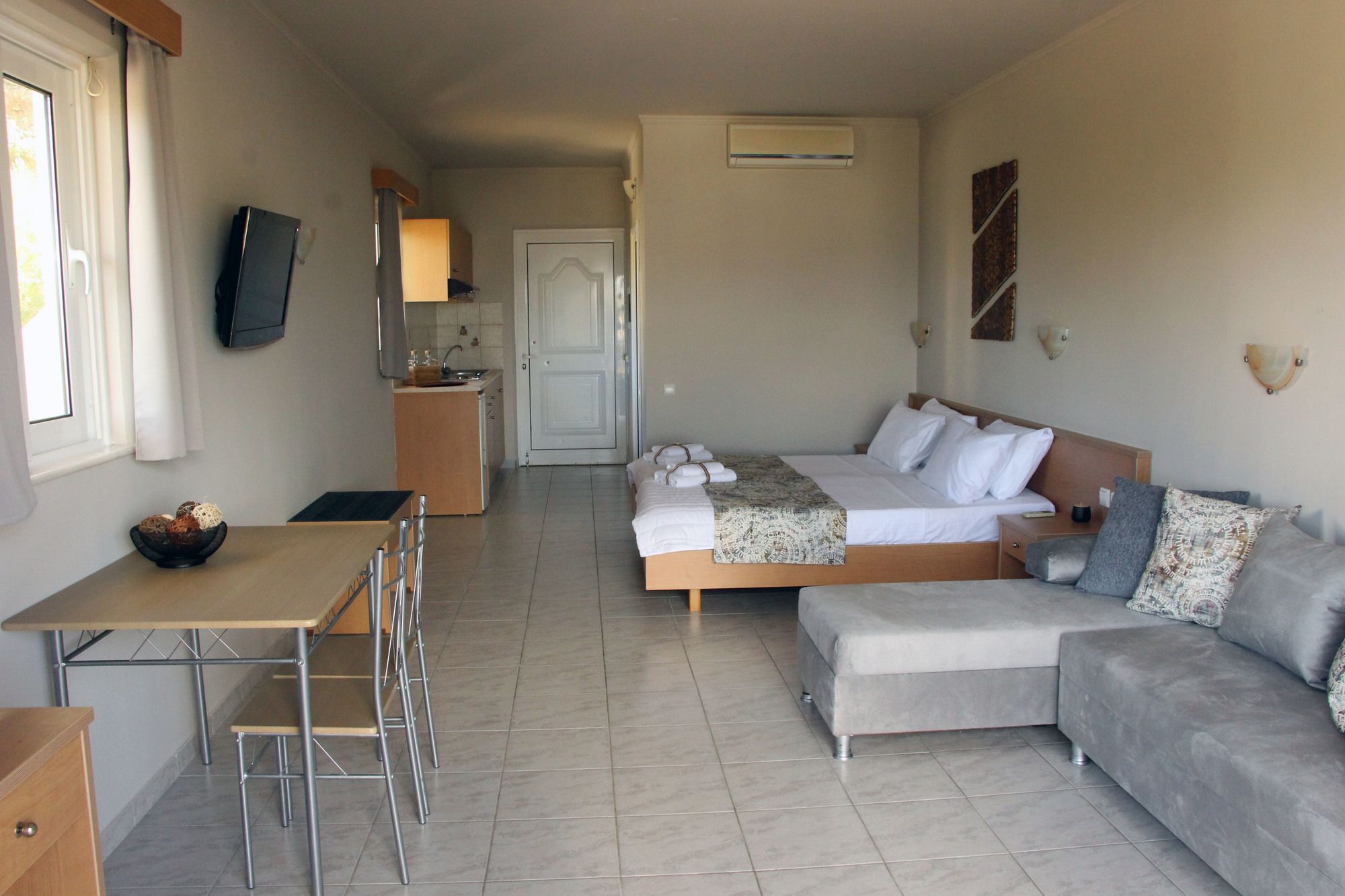 Si optas por alojarte en Miva Sea View de Rodas, estarás cerca de la playa y a apenas 14 min a pie de Playa de Faliraki. Además, este apartotel se encuentra a 14,1 km de Siete Manantiales y a 14,9 km de Acrópolis de Rodas. Reserva una de las 11 habitaciones climatizadas, todas dotadas de cocina con horno y placa de cocina. La conexión a Internet wifi gratis te permite comunicarte con los tuyos, y en tus ratos libres podrás entretenerte con el televisor de pantalla plana de 40 pulgadas con canales por cable. Entre las comodidades, se incluyen caja fuerte y hervidor eléctrico, además de un servicio de limpieza disponible todos los días. Con jardín donde descansar y comodidades como conexión a Internet wifi gratis y asistencia turística y para la compra de entradas, ¡no te faltará de nada! Se ofrece además área de picnic y área para parrillas. Este apartotel te ofrece una cafetería para tomar algo rápido, aunque también puedes pasarte por su snack-bar o delicatessen. Apaga la sed con tu bebida favorita en el bar o lounge. Se sirve un desayuno continental gratuito todos los días de 8:00 a 10:00. Tendrás consigna de equipaje, lavandería y caja fuerte en recepción a tu disposición. Hay un aparcamiento sin asistencia gratuito disponible.