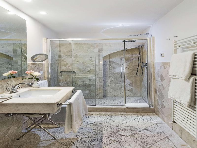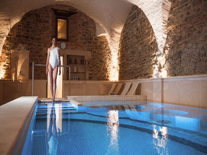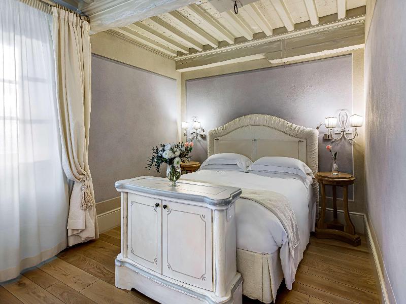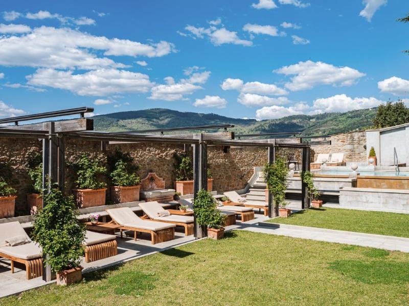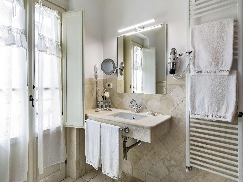 Este monasterio del siglo XV, enclavado en las murallas etruscas de Cortona, ha sido renovado preservando su estructura monástica y encanto tradicional. Las 36 habitaciones del hotel, que antiguamente fueron celdas de monjes, conservan características originales como techos con vigas o abovedados y frescos restaurados. El antiguo refectorio de los monjes ahora alberga el restaurante Gli Affreschi, donde la cocina contemporánea del chef destaca ingredientes locales, complementada por una bodega de 300 etiquetas. La cisterna romana del siglo XVII se ha transformado en el evocador Bagni di Bacco Spa.