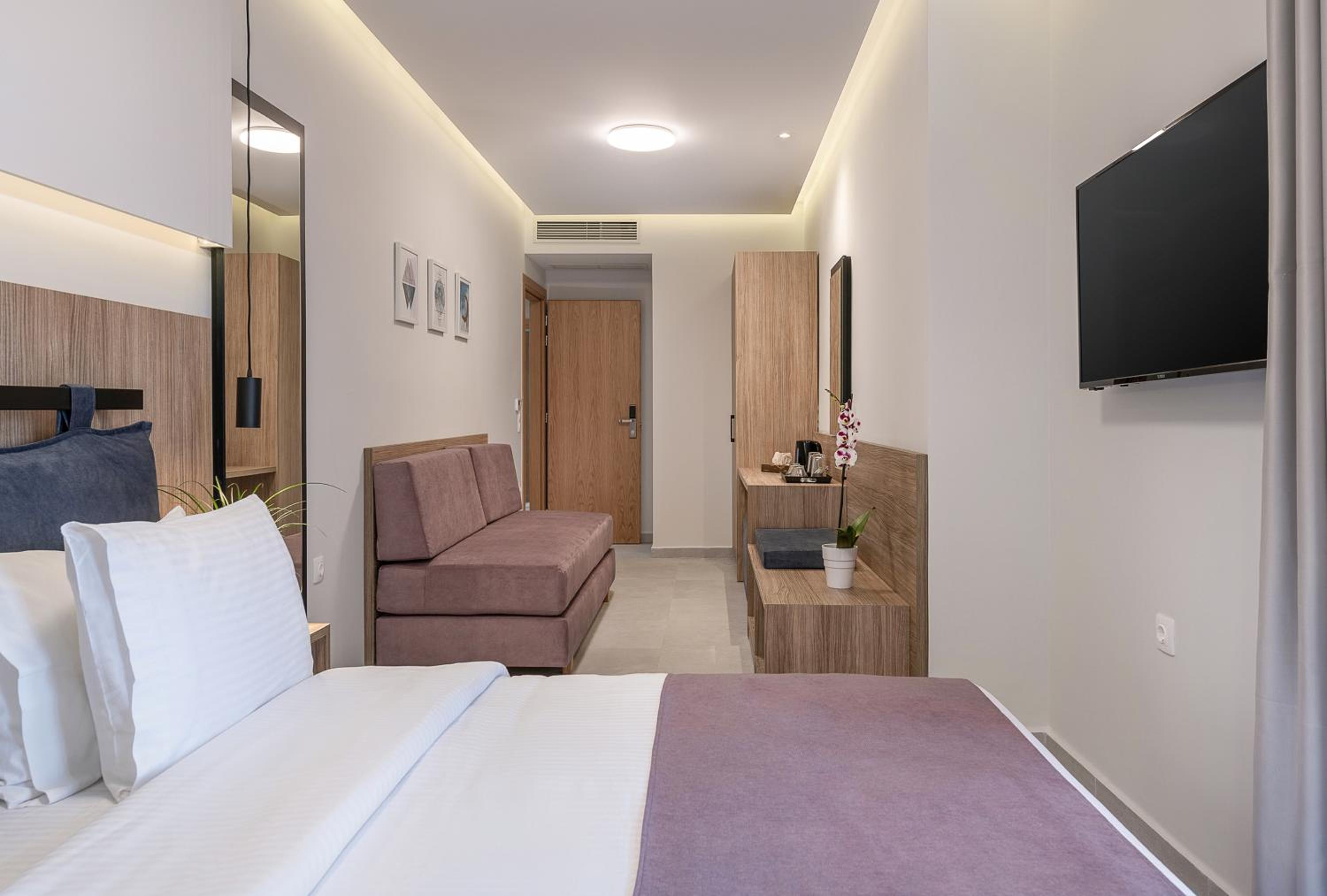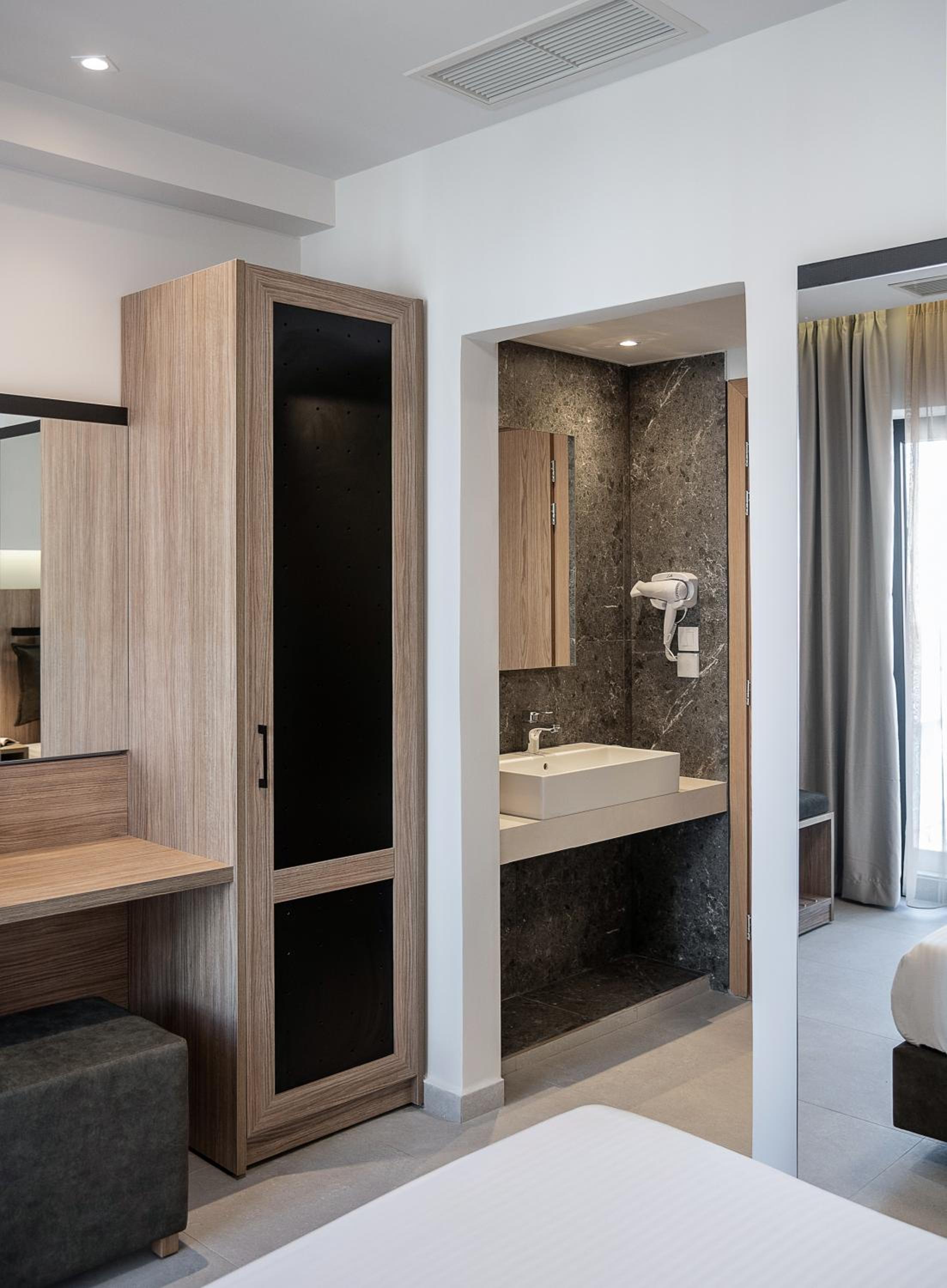 "Instalaciones y servicios incluidos Aire acondicionado, Conexión Wifi, Alquiler de bicicletas (cargo extra), bar, restaurante, Niñera/servicios para niños (cargo extra), lavandería (cargo extra), centro de negocios (cargo extra), Instalaciones para reuniones/banquetes (cargo extra) ), caja fuerte y ascensorLas habitaciones cuentan con aire acondicionado, conexión Wifi, televisión, baño, minibar, secador de pelo, caja fuerte, teléfono y té/café. Dirección: Manousogiannakidon 8, La Canea"