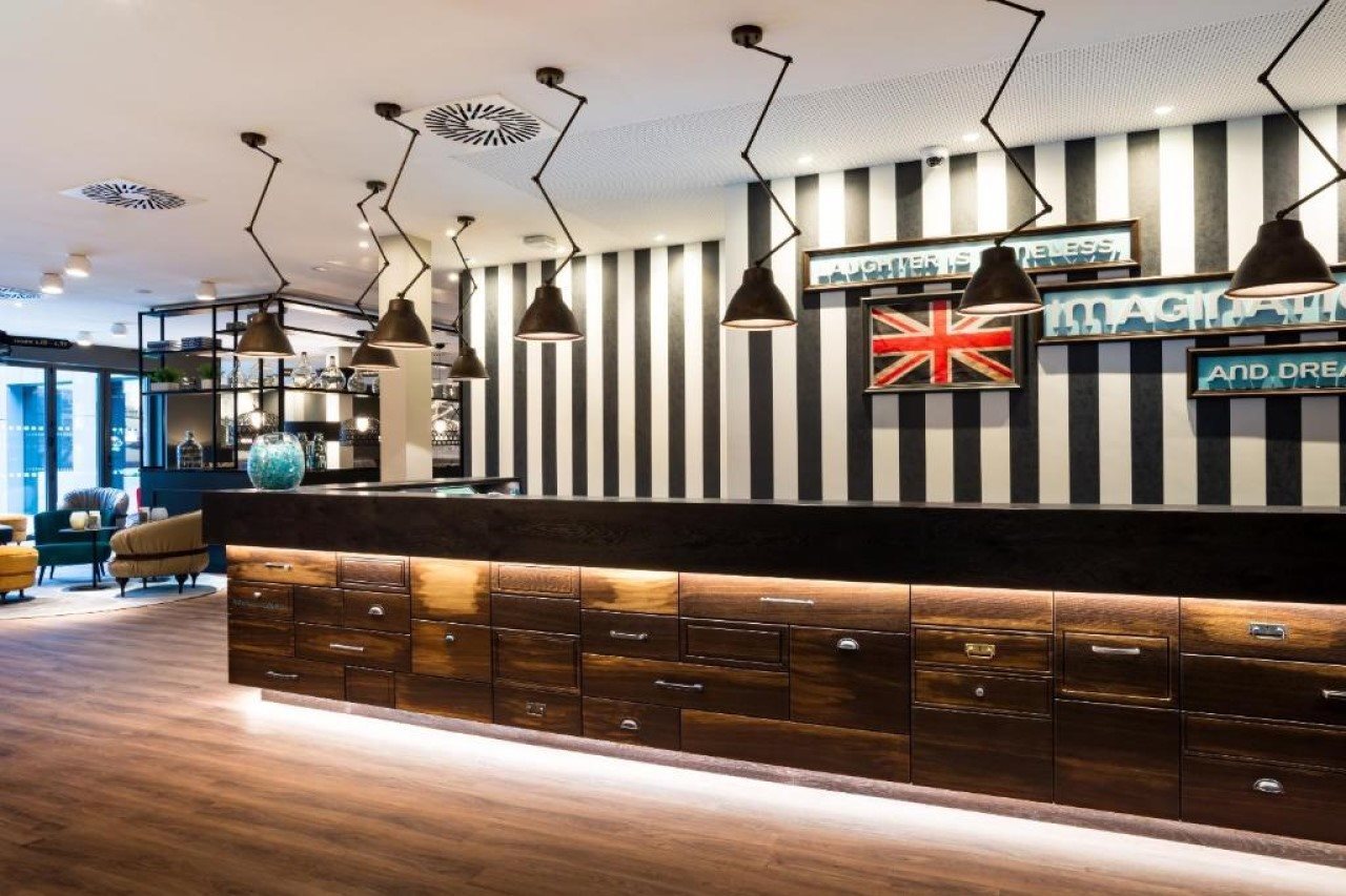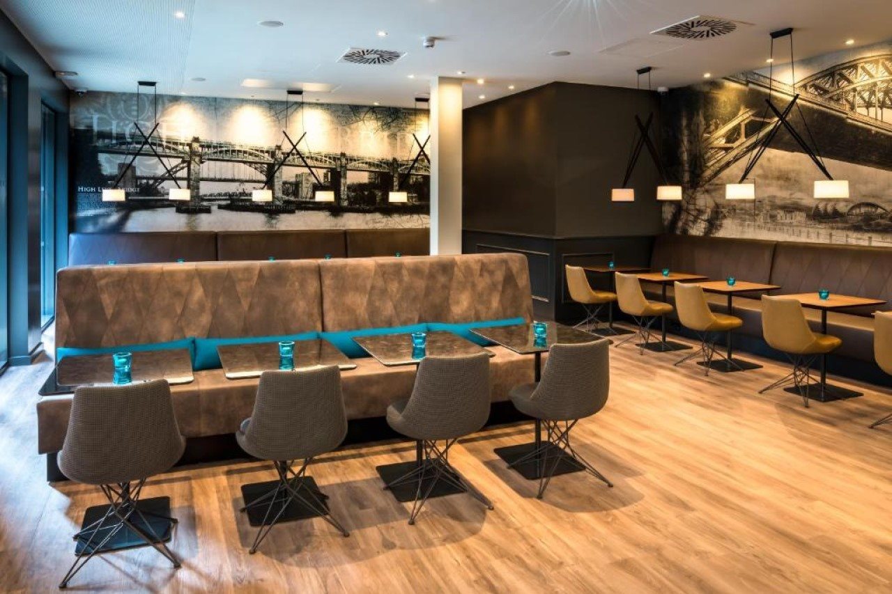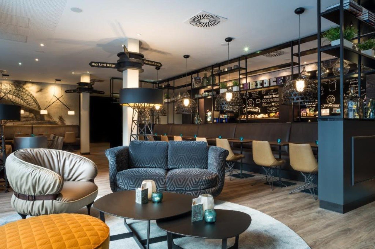 Real leather furniture by Baxter and fine rugs by Jan Kath complement the look. Elegant details such as chairs by Arketipo with distinctive steel frames, and mirrored shelving stocked with carafes of whisky add touches of charm.And of course, it is no accident that the striped wallpaper at reception is in Newcastle United colours. Even the location in the city’s historic centre suits the industrial-modern style of our affordable Design Hotel. Sights such as the Theatre Royal, Grey’s Monument and Newcastle Town Hall are close at hand, the hotel is handy for the central station, and the airport is easily accessible.Book your room in our Design Hotel and experience the rich contrasts between “old” industrial and “new” modern design.