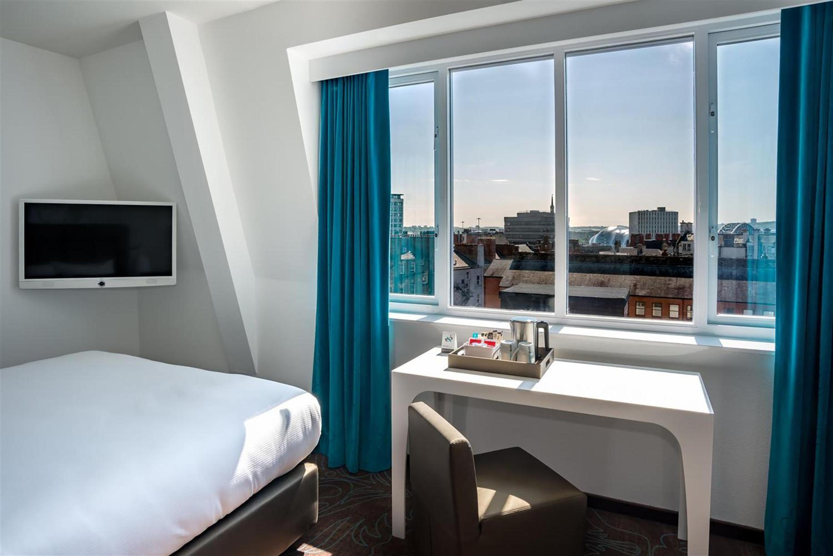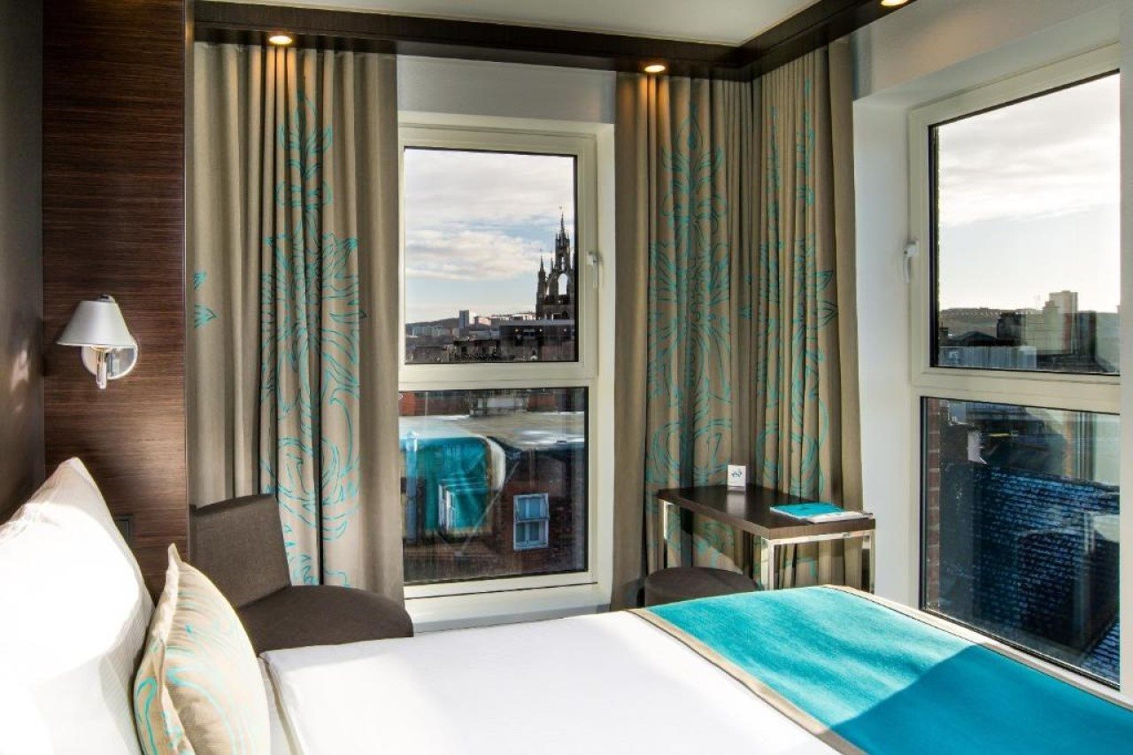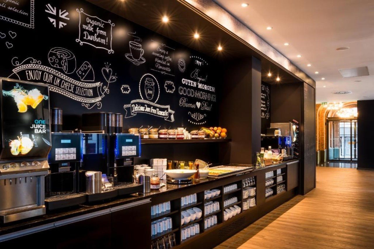 Real leather furniture by Baxter and fine rugs by Jan Kath complement the look. Elegant details such as chairs by Arketipo with distinctive steel frames, and mirrored shelving stocked with carafes of whisky add touches of charm.And of course, it is no accident that the striped wallpaper at reception is in Newcastle United colours. Even the location in the city’s historic centre suits the industrial-modern style of our affordable Design Hotel. Sights such as the Theatre Royal, Grey’s Monument and Newcastle Town Hall are close at hand, the hotel is handy for the central station, and the airport is easily accessible.Book your room in our Design Hotel and experience the rich contrasts between “old” industrial and “new” modern design.
