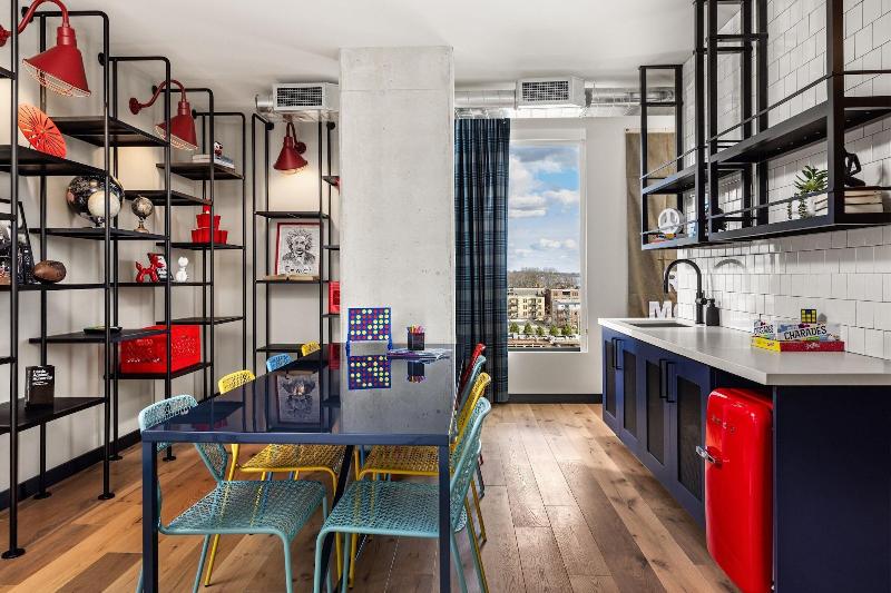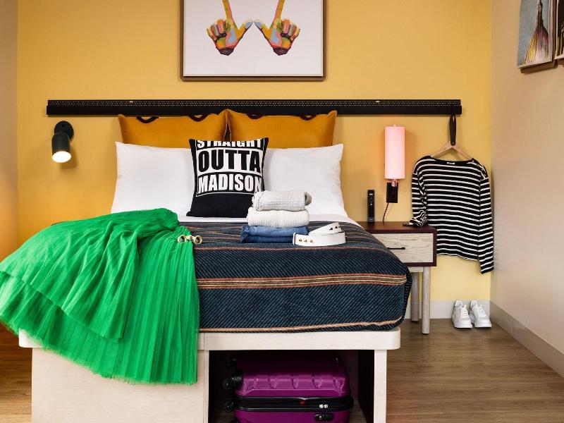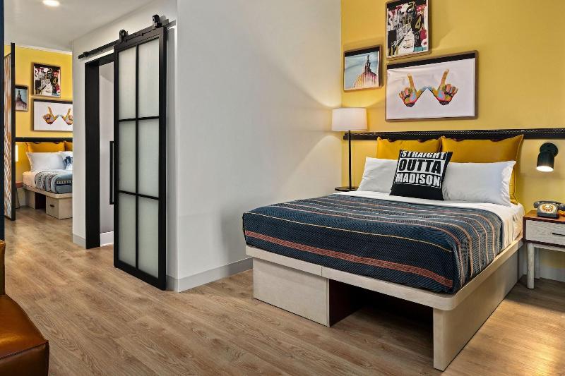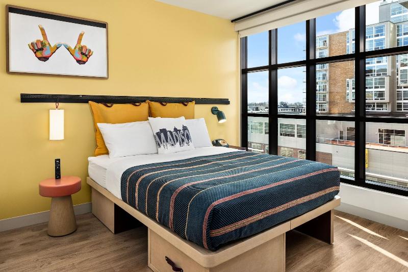 Disfruta de una ubicación céntrica en Madison en el hotel Moxy Madison Downtown, a solo 5 minutos en coche de la University of Wisconsin-Madison y el Kohl Center. Este moderno hotel ofrece 151 habitaciones con aire acondicionado, smart TV, wifi gratis y programación por cable. Los baños incluyen bañera o ducha y secador de pelo. Empieza el día con un desayuno a la carta (de pago), toma un aperitivo en la tienda de delicatessen o disfruta de una comida en el Bar Moxy. Relájate con una copa en el bar/salón o junto a la chimenea del vestíbulo. Los servicios también incluyen un centro de negocios abierto las 24 horas y consigna de equipaje. Entre las atracciones cercanas se incluyen el Breese Stevens Field (0, 1 mi), el Lake Mendota (0, 4 mi) y la Capitol Square (0, 7 mi). El Dane County Regional Airport (MSN) está a 7, 2 km.