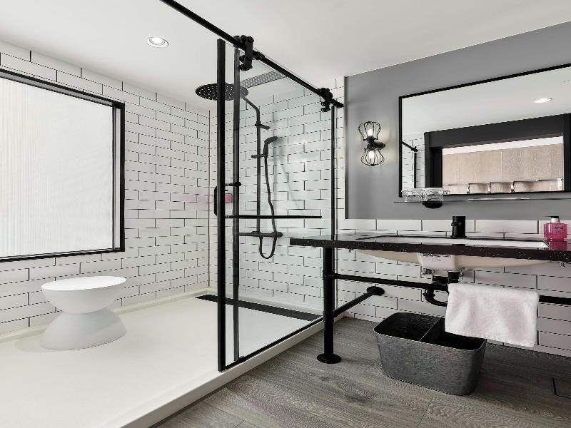 Exterior ramp is steep however property as whole is accessible. Did not stay in accessible room however regular room is doable. Close to shopping mall and theater as well...