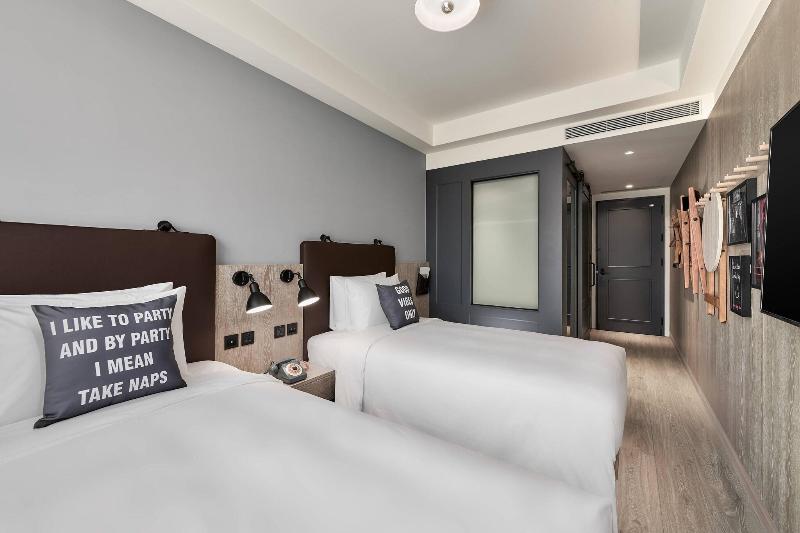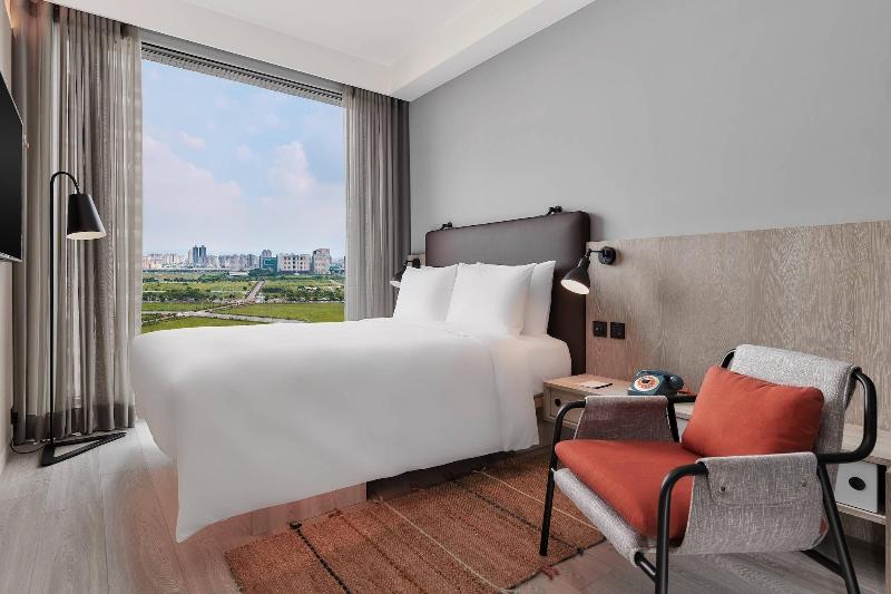 El Moxy Taichung, ubicado en el distrito Nantun de Taichung, se encuentra a 10 minutos en coche del Mercado Nocturno de Fengjia y del Parque de Esculturas Fengle. Este hotel ofrece 262 habitaciones, cada una equipada con TV de pantalla plana, wifi gratuito y programación por satélite. Los baños incluyen duchas de efecto lluvia y bidés. Para mayor comodidad, las habitaciones disponen de teléfono, escritorio y servicio de limpieza diario. Todos los días se sirve un desayuno completo por un suplemento. Las instalaciones del hotel incluyen recepción 24 horas y ascensor. Entre las atracciones cercanas se incluyen el Teatro Nacional de Taichung y el Park Lane by CMP, ambos a 4 km del hotel.
