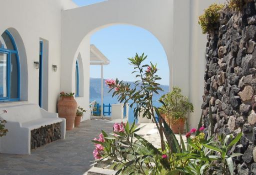 Este hotel, decorado al estilo típico de las Cícladas, se encuentra en Oia, a la entrada d...