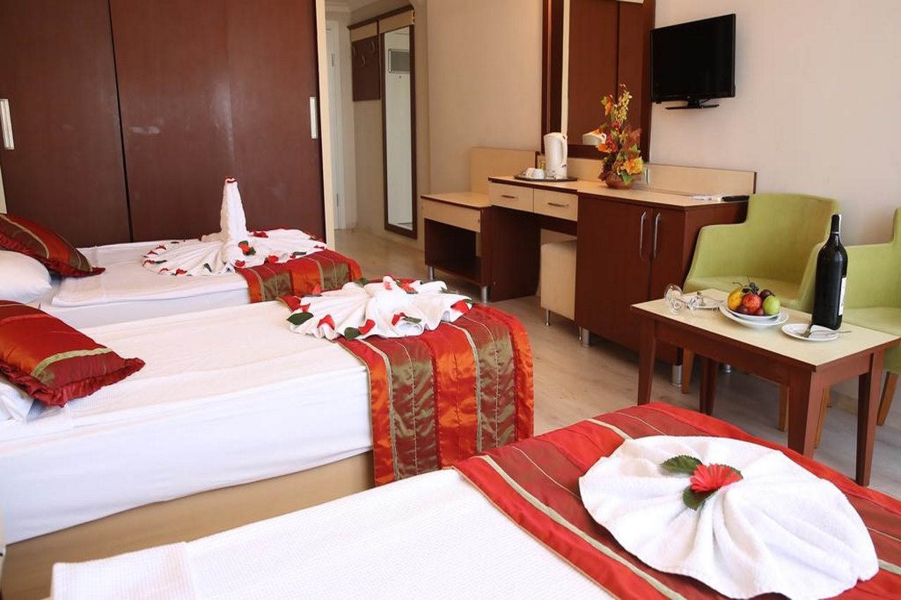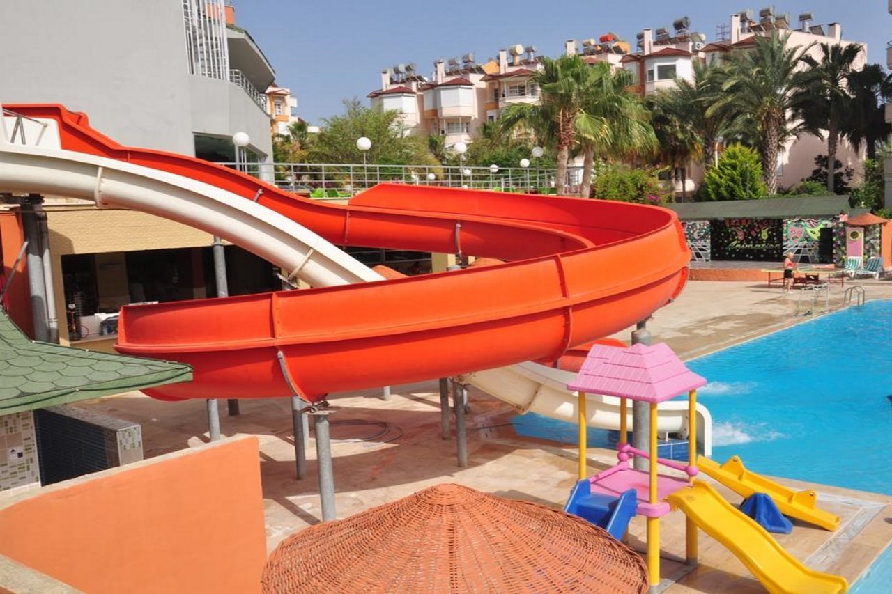 Las instalaciones y servicios incluyen acceso a Internet inalámbrico, recepción 24 horas, restaurante, bar, piscina, piscina cubierta, piscina infantil, toboganes, kids club, sala de fitness, juegos infantiles, baño turco, sauna y servicio de masajes (cargo extra).Las habitaciones cuentan con acceso a Internet inalámbrico, aire acondicionado, televisión, teléfono, caja de seguridad (cargo extra), mini bar (cargo extra), secador de pelo y cuarto de baño.Tenga en cuenta que algunas de las instalaciones anteriores pueden ser cerradas debido a las condiciones del clima y/o la temporada.En caso de elegir la opción de "todo incluido":El concepto de Todo Incluido comprende todas las comidas (desayuno, comida, cena y snacks) y las bebidas junto a las comidas tal como refrescos, cerveza, agua y bebidas alcohólicas, todas de marcas locales.Las bebidas se sirven desde la mañana hasta la noche (aproximadamente 22-24,00). El horario de apertura puede variar según el hotel. En algunos hoteles además se incluye un programa de actividades.Dirección: Fugla Mevkii,İncekum, Alanya, Incekum, Turquía.