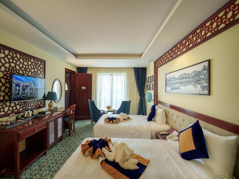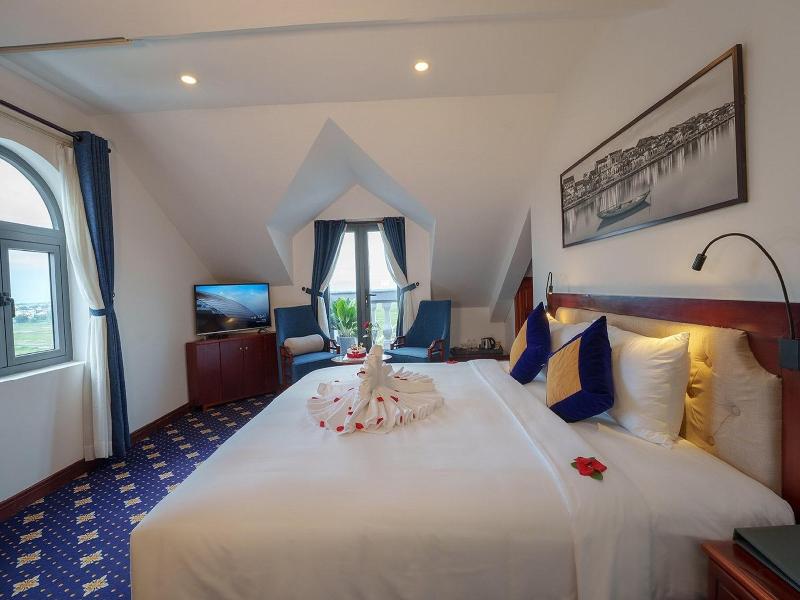 Este hotel de 4 estrellas ofrece una estancia única en Hoi An, mostrando una mezcla de arquitectura francesa y vietnamita cerca de extensos campos de arroz. Puedes relajarte en la piscina al aire libre, visitar el spa del hotel con sauna y baño turco, o usar el gimnasio. El hotel ofrece una variedad de opciones gastronómicas, incluyendo un restaurante y una cafetería. El alojamiento incluye una variedad de habitaciones y suites, muchas de ellas con vistas a la ciudad o a los arrozales vecinos. Todas las habitaciones están equipadas con wifi gratuito y aire acondicionado, y algunas cuentan con balcón privado. El hotel se encuentra a 1, 4 kilómetros del casco antiguo de Hoi An y a 2, 9 kilómetros de la playa de Cửa Đại.
